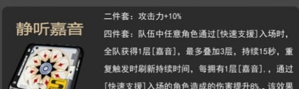 正文摘要:《絕區零》靜聽嘉音驅動盤搭配攻略:角色適配指南 ▶《絕區零》靜聽嘉音基本效果 靜聽嘉音是一套強力的驅動盤,其兩件套和四件套效果都具有很高的實用價值。這套裝備主要適用於支援和輸出型角色,能夠有效提升戰鬥表現。 👉 GM後台版 遊戲 推薦 ⬇️⬇️⬇️ 快速玩各種二次元動漫手遊app ▶《絕區零》驅動盤效果詳解 兩件套效果: - 快速支援入場時獲得嘉音效果 - 最多可疊加三層 - 每次觸發會刷新持續時間 - 每層效果都會提升快速支援入場角色的傷害 ▶《絕區零》適用角色推薦 兩件套推薦角色: - 露西 - 蒼角 - 比利 - 貓又 - 朱鳶 - 簡 四件套推薦角色: - 露西 - 蒼角 - 妮可 以下廣告滑動後還有帖子內容var custom_call_MIR = function (params) {if ( params === null || params.hasAd === false ) {var divRowSide;for (let index = 0; index < ONEADs.length; index++) {if (ONEADs[index].pub.player_mode === "mobile-inread") {divRowSide = ONEADs[index].pub.slotobj;}}var ins = document.createElement('ins');ins.className = 'clickforceads';ins.setAttribute('style', 'display:inline-block;');ins.setAttribute('data-ad-zone', '18264');divRowSide.appendChild(ins);var js = document.createElement('script');js.async = true;js.type = 'text/javascript';js.setAttribute('src', '//cdn.holmesmind.com/js/init.js');js.onload = function(){console.log('[ONEAD MIR] ClickForce Loaded');};divRowSide.appendChild(js);}};var _ONEAD = {};_ONEAD.pub = {};_ONEAD.pub.slotobj = document.getElementById("oneadMIRDFPTag");_ONEAD.pub.slots = ["div-onead-ad"];_ONEAD.pub.uid = "1000509";_ONEAD.pub.external_url = "https://onead.onevision.com.tw/";_ONEAD.pub.scopes = ["spotbuy", "speed"];_ONEAD.pub.player_mode_div = "div-onead-ad";_ONEAD.pub.player_mode = "mobile-inread";_ONEAD.pub.queryAdCallback = custom_call_MIR;var ONEAD_pubs = ONEAD_pubs || [];ONEAD_pubs.push(_ONEAD);var truvidScript = document.createElement('script'); truvidScript.async = true; truvidScript.setAttribute('data-cfasync','false'); truvidScript.type = 'text/javascript'; truvidScript.src = '//stg.truvidplayer.com/index.php?sub_user_id=597&widget_id=3309&playlist_id=2381&m=a&cb=' + (Math.random() * 10000000000000000); var currentScript = document.currentScript || document.scripts[document.scripts.length - 1]; currentScript.parentNode.insertBefore(truvidScript, currentScript.nextSibling); ▶《絕區零》角色適配表 套裝效果推薦角色使用建議兩件套露西、蒼角主要輸出兩件套比利、貓又副輸出兩件套朱鳶、簡輔助輸出四件套露西、蒼角、妮可快速支援 ▶《絕區零》常見問題Q&A Q1:靜聽嘉音的兩件套和四件套效果可以同時觸發嗎? A1:是的,裝備四件套時可以同時獲得兩件套和四件套的效果。 Q2:四件套的嘉音效果如何疊加? A2:通過快速支援入場來疊加,最多可以疊加三層,每次觸發都會刷新持續時間。 Q3:誰最適合裝備四件套? A3:擅長快速支援入場的角色如露西、蒼角、妮可最適合使用四件套。 Q4:兩件套適合給輸出角色使用嗎? A4:是的,兩件套提供的攻擊力加成對於輸出角色來說非常有用。 Q5:是否需要湊齊四件套才有價值? A5:不一定,即使只有兩件套也能提供不錯的攻擊力加成,視角色需求選擇。 |
