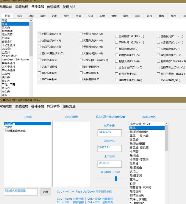 正文摘要:replyreload += ',' + 2367594; 版本:2024.12.16更新 ▶ 版本資訊 - 遊戲版本支援:所有PC平台版本 - 最後更新:2024.12.16 - 更新內容:支援1.0.13版本遊戲 👉 GM後台版 遊戲 推薦 ⬇️⬇️⬇️ 快速玩各種二次元動漫手遊app ▶ 主要功能分類 基礎能力: - Alt+1:無限生命 - Alt+2:無限氣力 - Alt+3:快速擊殺 - Alt+4:無限靈力 - Alt+5:物品不減 - Alt+6:無限棍勢 - Alt+7:無限元氣 戰鬥強化: - 免疫負面狀態 - 受擊無碰撞 - 100%掉落率 - 100%暴擊率 - 法術立即冷卻 - 變身立即冷卻 特殊功能: - 潛行不遇敵 - 葫蘆無限酒水 - 無限法寶時間 - 解鎖筋斗雲 - 全局加速 - 子彈時間 移動系統: - 加快步速 - 連續跳躍 - 超級跳躍 - 消除重力 - 自由視角 - 固定視距 進階功能: - 傳送瞬移系統 - 坐標調節 - 地標記錄 - 場景傳送 - 物品/裝備添加 - 多倍戰鬥經驗 ▶ 下載連結 修改器下載: 所有站內附件皆會附上安全掃描報告請會員查看純淨度百分比後判斷使用(adsbygoogle = window.adsbygoogle || []).push({});相關檔案須知:取得檔案前,請先詳細閱讀文章內容避免不必要錯誤與誤會發生。也可多參考文章討論樓層內容了解附件檔案相關討論資訊。 【此文章部分內容隱藏中】 解除隱藏說明教學點擊下方 繼續閱讀文章 後請仔細觀看文章內容 並依照指示進行下一步最後完成解除隱藏後系統會回到此文章自動顯示隱藏內容~繼續閱讀 功能類型按鍵設定主要效果基礎能力Alt+1~7能力值修改戰鬥強化快捷鍵戰鬥相關特殊功能快捷鍵遊戲體驗移動系統快捷鍵移動相關 ▶ 常見Q&A Q1: 修改器是否支援最新版本? A1: 支援所有PC平台版本,持續更新中。 Q2: 如何正確使用傳送功能? A2: 開啟傳送視窗後,可選擇已記錄地標或輸入坐標。 Q3: 物品添加功能有使用限制嗎? A3: 建議適度使用,過度使用可能影響遊戲體驗。 Q4: 為什麼某些功能無法使用? A4: 請確認遊戲版本相容性及修改器執行權限。 Q5: 如何關閉已開啟的功能? A5: 再次按下對應快捷鍵即可關閉。replyreload += ',' + 2367594; |