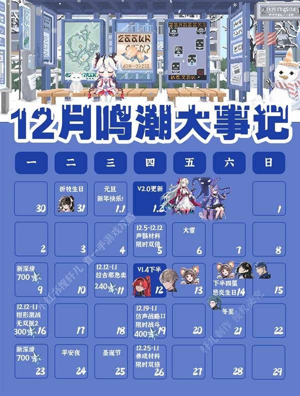 正文摘要:前言介紹 本攻略將為玩家總結12月在1.4版本期間的所有活動安排與獎勵內容。 活動時間表 12月5日-12月12日: - 聲骸材料雙倍掉落 - 建議為吟霖和裡哥刷取聲骸材料 12月12日-1月1日: - 拉古那急賣!先約活動開啟 - 鉗形激戰無雙版2上線 👉 GM後台版 遊戲 推薦 ⬇️⬇️⬇️ 快速玩各種二次元動漫手遊app 後期活動安排 12月19日-1月1日: - 仿聲戰略II限時戰鬥 12月25日-1月1日: - 養成材料雙倍掉落 - 可提前為2.0版本做準備 角色相關 卡池資訊: - 1.4下半期開啟吟霖、裡哥複刻 - 適合練習雷系隊伍組態 - 吟霖在限時戰鬥中相對較弱 角色生日: - 12月14日:忌炎生日 - 12月31日:折枝生日 活動類型時間段重點內容材料雙倍12.5-12.12聲骸材料限時活動12.12-1.1拉古那+鉗形激戰戰略活動12.19-1.1仿聲戰略II養成雙倍12.25-1.1所有養成材料 以下廣告滑動後還有帖子內容var custom_call_MIR = function (params) {if ( params === null || params.hasAd === false ) {var divRowSide;for (let index = 0; index < ONEADs.length; index++) {if (ONEADs[index].pub.player_mode === "mobile-inread") {divRowSide = ONEADs[index].pub.slotobj;}}var ins = document.createElement('ins');ins.className = 'clickforceads';ins.setAttribute('style', 'display:inline-block;');ins.setAttribute('data-ad-zone', '18264');divRowSide.appendChild(ins);var js = document.createElement('script');js.async = true;js.type = 'text/javascript';js.setAttribute('src', '//cdn.holmesmind.com/js/init.js');js.onload = function(){console.log('[ONEAD MIR] ClickForce Loaded');};divRowSide.appendChild(js);}};var _ONEAD = {};_ONEAD.pub = {};_ONEAD.pub.slotobj = document.getElementById("oneadMIRDFPTag");_ONEAD.pub.slots = ["div-onead-ad"];_ONEAD.pub.uid = "1000509";_ONEAD.pub.external_url = "https://onead.onevision.com.tw/";_ONEAD.pub.scopes = ["spotbuy", "speed"];_ONEAD.pub.player_mode_div = "div-onead-ad";_ONEAD.pub.player_mode = "mobile-inread";_ONEAD.pub.queryAdCallback = custom_call_MIR;var ONEAD_pubs = ONEAD_pubs || [];ONEAD_pubs.push(_ONEAD);var truvidScript = document.createElement('script'); truvidScript.async = true; truvidScript.setAttribute('data-cfasync','false'); truvidScript.type = 'text/javascript'; truvidScript.src = '//stg.truvidplayer.com/index.php?sub_user_id=597&widget_id=3309&playlist_id=2381&m=a&cb=' + (Math.random() * 10000000000000000); var currentScript = document.currentScript || document.scripts[document.scripts.length - 1]; currentScript.parentNode.insertBefore(truvidScript, currentScript.nextSibling); 常見問答 Q1:哪個時段刷材料最划算? A1:12.5-12.12聲骸材料和12.25-1.1養成材料雙倍期間。 Q2:複刻池角色值得抽取嗎? A2:如果想組雷隊可以考慮。 Q3:養成材料雙倍要刷多少? A3:建議為2.0版本提前準備。 Q4:限時活動獎勵如何? A4:包含拉古那和鉗形激戰的相關獎勵。 Q5:生日角色有特殊活動嗎? A5:忌炎和折枝將在12月舉辦生日活動。 |