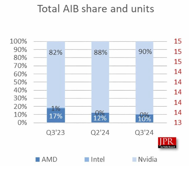 正文摘要:市場佔有率創新高,NVIDIA一枝獨秀 根據調查機構Jon Peddie最新研究數據顯示,NVIDIA在2024年第三季度的顯卡市場佔有率飆升至90%,創下歷史新高紀錄。這個數據對於玩家來說意味著在選購遊戲顯示卡時,選擇性將更加受限。 市場壟斷可能影響遊戲玩家權益 許多玩家曾抱怨顯卡價格不斷上漲,這與NVIDIA的市場主導地位有直接關係。雖然NVIDIA執行長黃仁勳將此歸咎於摩尔定律失效,但業內人士認為,由於缺乏實質性競爭對手,NVIDIA的壟斷效應可能會更加明顯,這可能會影響到玩家未來購買顯卡的成本。 以下廣告滑動後還有帖子內容var custom_call_MIR = function (params) {if ( params === null || params.hasAd === false ) {var divRowSide;for (let index = 0; index < ONEADs.length; index++) {if (ONEADs[index].pub.player_mode === "mobile-inread") {divRowSide = ONEADs[index].pub.slotobj;}}var ins = document.createElement('ins');ins.className = 'clickforceads';ins.setAttribute('style', 'display:inline-block;');ins.setAttribute('data-ad-zone', '18264');divRowSide.appendChild(ins);var js = document.createElement('script');js.async = true;js.type = 'text/javascript';js.setAttribute('src', '//cdn.holmesmind.com/js/init.js');js.onload = function(){console.log('[ONEAD MIR] ClickForce Loaded');};divRowSide.appendChild(js);}};var _ONEAD = {};_ONEAD.pub = {};_ONEAD.pub.slotobj = document.getElementById("oneadMIRDFPTag");_ONEAD.pub.slots = ["div-onead-ad"];_ONEAD.pub.uid = "1000509";_ONEAD.pub.external_url = "https://onead.onevision.com.tw/";_ONEAD.pub.scopes = ["spotbuy", "speed"];_ONEAD.pub.player_mode_div = "div-onead-ad";_ONEAD.pub.player_mode = "mobile-inread";_ONEAD.pub.queryAdCallback = custom_call_MIR;var ONEAD_pubs = ONEAD_pubs || [];ONEAD_pubs.push(_ONEAD);var truvidScript = document.createElement('script'); truvidScript.async = true; truvidScript.setAttribute('data-cfasync','false'); truvidScript.type = 'text/javascript'; truvidScript.src = '//stg.truvidplayer.com/index.php?sub_user_id=597&widget_id=3309&playlist_id=2381&m=a&cb=' + (Math.random() * 10000000000000000); var currentScript = document.currentScript || document.scripts[document.scripts.length - 1]; currentScript.parentNode.insertBefore(truvidScript, currentScript.nextSibling); 常見問與答 Q1:為什麼NVIDIA能夠在顯卡市場佔有如此高的份額? A1:主要是因為NVIDIA在技術創新、驅動程式支援及遊戲優化方面的持續投資,使其產品在效能表現上更具優勢。 Q2:這樣的市場壟斷會對玩家造成什麼影響? A2:可能會導致顯卡價格持續上漲,同時減少玩家的選擇空間,特別是在中低階顯卡市場。 Q3:AMD的顯卡對於遊戲玩家來說是否還是個好選擇? A3:AMD的顯卡在性價比方面仍有其優勢,特別是對於預算有限的玩家來說,仍是一個值得考慮的選擇。 Q4:未來顯卡市場會有什麼變化? A4:根據預測,整體市場規模可能會縮小,但隨著遊戲和AI技術的發展,高階顯卡的需求可能會持續存在。 Q5:玩家在選購顯卡時應該注意什麼? A5:建議關注性價比、遊戲相容性、驅動程式支援度,以及自身的遊戲需求來做選擇,不必一味追求最新最貴的產品。 👉 GM後台版 遊戲 推薦 ⬇️⬇️⬇️ 快速玩各種二次元動漫手遊app |