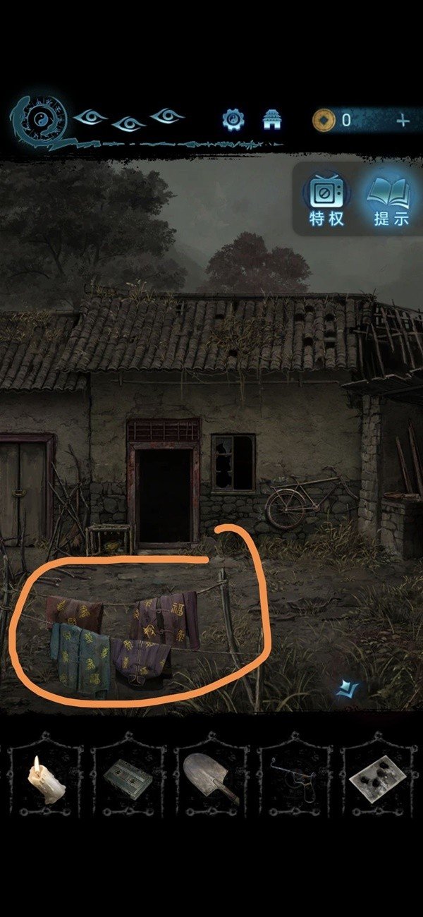 將照片與壽衣進行比對,你會發現照片上的洞與壽衣上的字相對應。根據洞裡字的順序(從右往左,紅點表示順序),打開奚醫生家裡的門鎖。 接著,將金箔放在肖家佛龕的銅人上,並使用熱熨斗熨燙。完成後,你就能