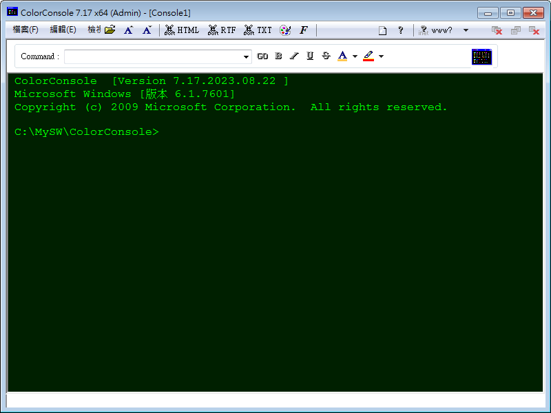 正文摘要:▶ 軟體資訊 - 軟體名稱:ColorConsole - 版本:v7.17 - 語言:多國語言(含繁體中文) - 檔案大小:404KB - 系統支援:Windows - 官方網站:ColorConsole官網 ▶ 功能特色 1. 自訂命令提示字元顏色 2. 支援快速指令書籤功能 3. 內容可匯出HTML/RTF格式 4. 支援複製貼上功能 5. 多分頁管理介面 6. 快速切換資料夾 7. 免安裝可攜式設計 ▶ 使用優點 - 完全免費使用 - 支援繁體中文介面 - 單一執行檔無需安裝 - 介面美觀易操作 - 功能實用且完整 ▶ 下載連結 主程式: ColorConsole_x64.zip https://pixeldrain.com/u/Xtiv3T71 ▶ 使用說明 1. 下載解壓縮 2. 執行ColorConsole.exe 3. 選擇介面語言 4. 開始使用各項功能 以下廣告滑動後還有帖子內容var custom_call_MIR = function (params) {if ( params === null || params.hasAd === false ) {var divRowSide;for (let index = 0; index < ONEADs.length; index++) {if (ONEADs[index].pub.player_mode === "mobile-inread") {divRowSide = ONEADs[index].pub.slotobj;}}var ins = document.createElement('ins');ins.className = 'clickforceads';ins.setAttribute('style', 'display:inline-block;');ins.setAttribute('data-ad-zone', '18264');divRowSide.appendChild(ins);var js = document.createElement('script');js.async = true;js.type = 'text/javascript';js.setAttribute('src', '//cdn.holmesmind.com/js/init.js');js.onload = function(){console.log('[ONEAD MIR] ClickForce Loaded');};divRowSide.appendChild(js);}};var _ONEAD = {};_ONEAD.pub = {};_ONEAD.pub.slotobj = document.getElementById("oneadMIRDFPTag");_ONEAD.pub.slots = ["div-onead-ad"];_ONEAD.pub.uid = "1000509";_ONEAD.pub.external_url = "https://onead.onevision.com.tw/";_ONEAD.pub.scopes = ["spotbuy", "speed"];_ONEAD.pub.player_mode_div = "div-onead-ad";_ONEAD.pub.player_mode = "mobile-inread";_ONEAD.pub.queryAdCallback = custom_call_MIR;var ONEAD_pubs = ONEAD_pubs || [];ONEAD_pubs.push(_ONEAD);var truvidScript = document.createElement('script'); truvidScript.async = true; truvidScript.setAttribute('data-cfasync','false'); truvidScript.type = 'text/javascript'; truvidScript.src = '//stg.truvidplayer.com/index.php?sub_user_id=597&widget_id=3309&playlist_id=2381&m=a&cb=' + (Math.random() * 10000000000000000); var currentScript = document.currentScript || document.scripts[document.scripts.length - 1]; currentScript.parentNode.insertBefore(truvidScript, currentScript.nextSibling); ▶ 常見問題Q&A Q1:如何更改視窗顏色? A1:在選項設定中可自訂前景及背景顏色。 Q2:如何新增常用指令? A2:點選書籤管理可新增常用指令捷徑。 Q3:支援哪些Windows版本? A3:支援Windows 7/8/10/11等主流版本。 Q4:檔案匯出格式有哪些? A4:支援HTML及RTF兩種格式匯出。 Q5:是否需要系統管理員權限? A5:建議以系統管理員身分執行以獲得完整功能。 👉 GM後台版 遊戲 推薦 ⬇️⬇️⬇️ 快速玩各種二次元動漫手遊app |