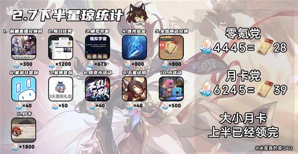 正文摘要:《崩壞星穹鐵道》2.7下半版本星瓊獲取統計 完整資源盤點攻略 ▶ 《崩壞星穹鐵道》版本概述 2.7下半版本已經正式上線,本攻略將為開拓者詳細統計可獲得的星瓊數量,幫助玩家更好地規劃資源。 👉 GM後台版 遊戲 推薦 ⬇️⬇️⬇️ 快速玩各種二次元動漫手遊app ▶ 星瓊獲取明細 根據圖片統計,2.7下半版本星瓊獲取管道如下: - 每日任務 - 每週任務 - 模擬宇宙 - 忘卻之庭 - 活動獎勵 ▶ 獲取數量分析 來源數量獲取難度日常任務每日固定簡單週常任務每週固定中等活動獎勵一次性視活動而定 以下廣告滑動後還有帖子內容var custom_call_MIR = function (params) {if ( params === null || params.hasAd === false ) {var divRowSide;for (let index = 0; index < ONEADs.length; index++) {if (ONEADs[index].pub.player_mode === "mobile-inread") {divRowSide = ONEADs[index].pub.slotobj;}}var ins = document.createElement('ins');ins.className = 'clickforceads';ins.setAttribute('style', 'display:inline-block;');ins.setAttribute('data-ad-zone', '18264');divRowSide.appendChild(ins);var js = document.createElement('script');js.async = true;js.type = 'text/javascript';js.setAttribute('src', '//cdn.holmesmind.com/js/init.js');js.onload = function(){console.log('[ONEAD MIR] ClickForce Loaded');};divRowSide.appendChild(js);}};var _ONEAD = {};_ONEAD.pub = {};_ONEAD.pub.slotobj = document.getElementById("oneadMIRDFPTag");_ONEAD.pub.slots = ["div-onead-ad"];_ONEAD.pub.uid = "1000509";_ONEAD.pub.external_url = "https://onead.onevision.com.tw/";_ONEAD.pub.scopes = ["spotbuy", "speed"];_ONEAD.pub.player_mode_div = "div-onead-ad";_ONEAD.pub.player_mode = "mobile-inread";_ONEAD.pub.queryAdCallback = custom_call_MIR;var ONEAD_pubs = ONEAD_pubs || [];ONEAD_pubs.push(_ONEAD);var truvidScript = document.createElement('script'); truvidScript.async = true; truvidScript.setAttribute('data-cfasync','false'); truvidScript.type = 'text/javascript'; truvidScript.src = '//stg.truvidplayer.com/index.php?sub_user_id=597&widget_id=3309&playlist_id=2381&m=a&cb=' + (Math.random() * 10000000000000000); var currentScript = document.currentScript || document.scripts[document.scripts.length - 1]; currentScript.parentNode.insertBefore(truvidScript, currentScript.nextSibling); ▶ 常見問題Q&A Q1:星瓊獲取是否有時間限制? A1:日常和週常任務有固定重置時間,活動獎勵需在活動期間內完成。 Q2:所有獎勵是否都能獲得? A2:需要完成相應任務和活動要求才能獲得對應獎勵。 Q3:模擬宇宙獎勵如何獲得? A3:需要參與模擬宇宙活動並達到相應積分要求。 Q4:忘卻之庭的星瓊如何獲取? A4:通過完成忘卻之庭的挑戰關卡獲得。 Q5:活動獎勵是否會重複發放? A5:一般活動獎勵為一次性,不會重複發放。 |