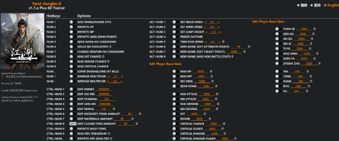 正文摘要:replyreload += ',' + 2368688;《下一站江湖Ⅱ》v1.1.x 遊戲修改器|60項功能修改+完整屬性數值調整工具 版本資訊:v1.1.x+ 更新日期:2024.12.27 修改器介紹 下一站江湖Ⅱ修改器提供60項強大功能,全方位支援遊戲體驗優化,從基礎屬性到進階數值皆可自由調整,讓玩家能夠依照個人喜好打造專屬武俠世界。 核心功能 ✦ 戰鬥相關 - 無敵模式 (Num 1) - 無限血量/內力 (Num 2/3) - 輕功無限/無冷卻 (Num 4/5) - 技能無冷卻時間 (Num 6) - 必中/閃避/暴擊最大化 (Num 8/9/0) ✦ 角色屬性 - 修為值修改 (Ctrl+Num 2) - 體力值調整 (Ctrl+Num 3) - 感悟值增加 (Ctrl+Num 4) - 道德值設定 (Ctrl+Num 5) ✦ 遊戲進階 - 金錢數量修改 (Ctrl+Num 1) - 物品數量調整 (Ctrl+Num 6/7/8) - NPC好感度最大化 (Ctrl+Num 0) - 遊戲速度設定 (Ctrl+Num +) ✦ 新遊戲設定 - 屬性點數修改 (Alt+Num 6) - 天賦點數調整 (Alt+Num 7) - 非戰鬥屬性最大化 (Alt+Num 8) 特色說明 - 支援最新遊戲版本 - 完整中文介面 - 快捷鍵操作便利 - 即時數值修改 下載連結 修改器下載: 所有站內附件皆會附上安全掃描報告請會員查看純淨度百分比後判斷使用(adsbygoogle = window.adsbygoogle || []).push({});相關檔案須知:取得檔案前,請先詳細閱讀文章內容避免不必要錯誤與誤會發生。也可多參考文章討論樓層內容了解附件檔案相關討論資訊。 【此文章部分內容隱藏中】 解除隱藏說明教學點擊下方 繼續閱讀文章 後請仔細觀看文章內容 並依照指示進行下一步最後完成解除隱藏後系統會回到此文章自動顯示隱藏內容~繼續閱讀 常見問題Q&A Q1:如何確認修改器版本相容性? A1:支援v1.1.x+版本,使用前請確認遊戲版本。 Q2:修改後的存檔是否安全? A2:建議另存新檔進行遊戲,以確保原始存檔安全。 Q3:為什麼部分功能無法使用? A3:請確認是否以管理員權限執行修改器。 Q4:修改數值有上限嗎? A4:部分數值有合理範圍限制,建議適度調整。 Q5:能否在線上模式使用? A5:建議僅在單機模式下使用,避免影響遊戲平衡。 👉 GM後台版 遊戲 推薦 ⬇️⬇️⬇️ 快速玩各種二次元動漫手遊appreplyreload += ',' + 2368688; |