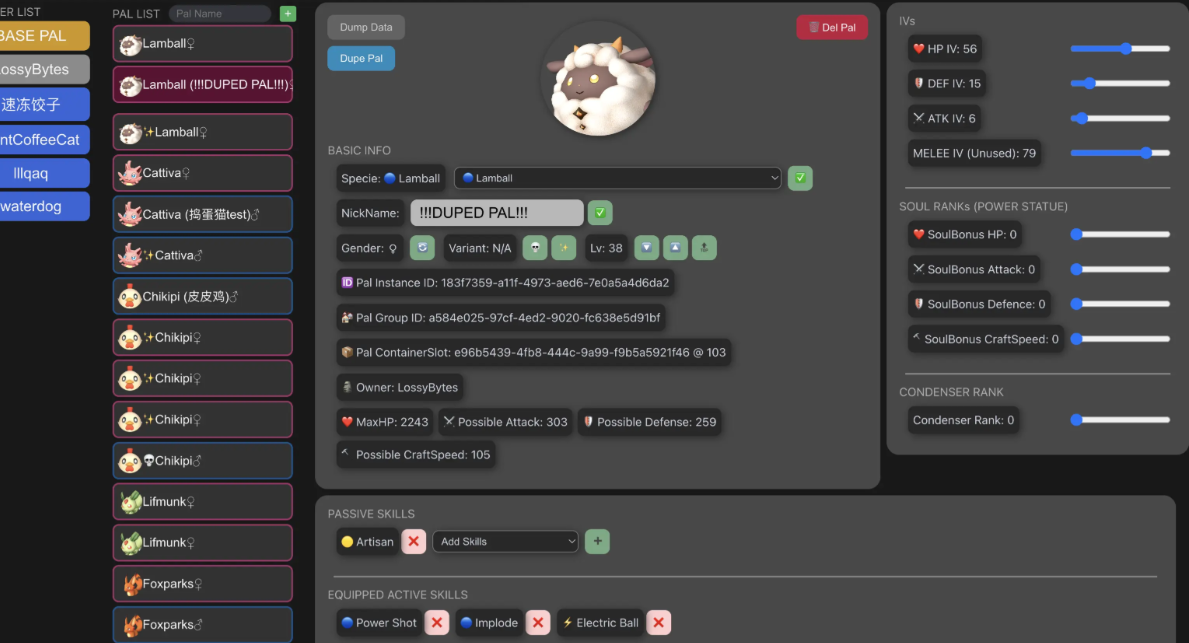 正文摘要:replyreload += ',' + 2368747; ▶ 帕魯存檔編輯器介紹 版本資訊:V0.11.0-Preview-03-2 更新日期:2024.12.27 ▶ 更新內容說明 最新版本已支援天墜之地的虹色詞條功能,但部分新帕魯可能暫時無法顯示。 - 等級上限:60級 - 魂強化等級上限:20級 - 增加被動技能修改 👉 GM後台版 遊戲 推薦 ⬇️⬇️⬇️ 快速玩各種二次元動漫手遊app ▶ 主要功能列表 【帕魯管理】 - 生成/複製/刪除帕魯 - 顯示/隱藏特殊帕魯 - 管理帕魯欄位資料 【屬性修改】 - 更改帕魯性別 - 切換BOSS/稀有/塔主狀態 - 修改/刪除暱稱 - 技能管理(主動/裝備/被動) - 等級相關調整 - 種族變更 - 個體值調整 【狀態管理】 - 計算並顯示各項能力值 - 移除工作疾病 - 帕魯復活 - 食物BUFF時間修改(僅CLI支援) ▶ 下載連結 檔案名稱:palworld-pal-editor-0.11.0-Preview-03-2-Windows.exe 所有站內附件皆會附上安全掃描報告請會員查看純淨度百分比後判斷使用(adsbygoogle = window.adsbygoogle || []).push({});相關檔案須知:取得檔案前,請先詳細閱讀文章內容避免不必要錯誤與誤會發生。也可多參考文章討論樓層內容了解附件檔案相關討論資訊。 【此文章部分內容隱藏中】 解除隱藏說明教學點擊下方 繼續閱讀文章 後請仔細觀看文章內容 並依照指示進行下一步最後完成解除隱藏後系統會回到此文章自動顯示隱藏內容~繼續閱讀 ▶ 使用教學 - 詳細教學影片:.video-container { position: relative; padding-bottom: 56.25%; padding-top: 30px; height: 0; overflow: hidden;}.video-container iframe,.video-container object,.video-container embed { position: absolute; top: 0; left: 0; width: 100%; height: 100%;}外連至此YOUTUBE影片連結 - 官方使用說明:https://github.com/KrisCris/Palw ... evelop/README.cn.md 功能分類主要內容基礎管理生成/複製/刪除屬性編輯能力值/技能/等級狀態調整復活/疾病/BUFF特殊功能虹色詞條/特殊狀態 ▶ 常見問題Q&A Q1:為什麼某些新帕魯無法顯示? A1:目前版本仍在更新中,部分新增帕魯可能暫時無法完全支援。 Q2:如何修改食物BUFF時間? A2:目前只能通過CLI界面進行修改。 Q3:編輯存檔會影響遊戲穩定性嗎? A3:建議在修改前先備份存檔,以防止意外發生。 Q4:最高可以改到多少級? A4:當前版本支援最高60級,魂強化上限為20級。 Q5:能否一次性修改多個帕魯? A5:是的,可以通過批次管理功能同時修改多個帕魯的屬性。 replyreload += ',' + 2368747; |