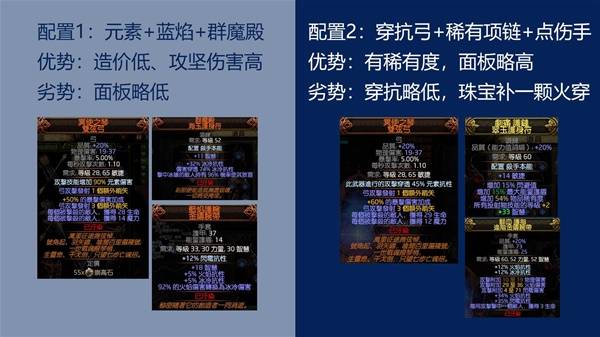 正文摘要:《流亡黯道2》銳眼遊俠爆炸箭BD攻略|技能配置+核心機制全解析 (Part 1) ▶ 《流亡黯道2》爆炸箭BD基礎介紹 銳眼遊俠的爆炸箭BD是一種傷害輸出強大的配置,透過合理配裝可以在保證輸出的同時兼顧生存能力。 核心機制: - 利用武器套裝白嫖印記效果 - 電流印記配合武器天賦1的感電天賦 - 打出77%感電效果 - taken傷提高57% - 結算傷害總增50% 裝備部位主要需求替代方案頭部聖光哀痛憤怒的誕生手套藍焰護腕點傷血抗手套胸甲高閃避+高抗性2000+閃避項鍊群魔殿精魂+血抗 ▶ 《流亡黯道2》常見問題Q&A Q1:藍焰護腕如何選擇? A1:建議購買低價格1-3EX的版本,自行工匠開空並用瓦爾寶珠調整。 Q2:防具配置的優先順序是什麼? A2:胸甲、腰帶、鞋子優先補抗性,其次考慮血量。 Q3:兩種配置版本如何選擇? A3:轉冰手+群魔殿版本攻堅效果好,黃裝版本更容易補抗且稀有度高。 Q4:前期裝備如何處理? A4:可使用點傷抗性黃手套和精魂+血抗項鍊作為過渡。 Q5:天賦配點的核心原則是什麼? A5:利用武器套裝配合電流印記,追求最大化感電效果和總傷害提升。 |