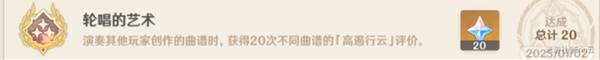 正文摘要:▶《原神》輪唱的藝術成就介紹 《原神》5.3版本推出了全新成就「輪唱的藝術」,玩家需要在演奏其他玩家創作的曲譜時,獲得20次不同曲譜的高遏行雲評價才能達成。本攻略將為各位詳細介紹如何快速完成這個成就。 👉 GM後台版 遊戲 推薦 ⬇️⬇️⬇️ 快速玩各種二次元動漫手遊app ▶《原神》輪唱的藝術達成步驟 1. 進入曲譜交流區 首先需要通過以下步驟進入交流區: - 打開背包找到千音雅集道具 - 進入活動界面 - 點擊左上角進入曲譜交流區 ▶成就達成要點對照表 步驟操作要點注意事項進入交流區使用千音雅集需先獲得道具篩選設置難度1+入門休閒確保曲譜簡單曲譜選擇挑選音符少的需20首不同曲譜 以下廣告滑動後還有帖子內容var custom_call_MIR = function (params) {if ( params === null || params.hasAd === false ) {var divRowSide;for (let index = 0; index < ONEADs.length; index++) {if (ONEADs[index].pub.player_mode === "mobile-inread") {divRowSide = ONEADs[index].pub.slotobj;}}var ins = document.createElement('ins');ins.className = 'clickforceads';ins.setAttribute('style', 'display:inline-block;');ins.setAttribute('data-ad-zone', '18264');divRowSide.appendChild(ins);var js = document.createElement('script');js.async = true;js.type = 'text/javascript';js.setAttribute('src', '//cdn.holmesmind.com/js/init.js');js.onload = function(){console.log('[ONEAD MIR] ClickForce Loaded');};divRowSide.appendChild(js);}};var _ONEAD = {};_ONEAD.pub = {};_ONEAD.pub.slotobj = document.getElementById("oneadMIRDFPTag");_ONEAD.pub.slots = ["div-onead-ad"];_ONEAD.pub.uid = "1000509";_ONEAD.pub.external_url = "https://onead.onevision.com.tw/";_ONEAD.pub.scopes = ["spotbuy", "speed"];_ONEAD.pub.player_mode_div = "div-onead-ad";_ONEAD.pub.player_mode = "mobile-inread";_ONEAD.pub.queryAdCallback = custom_call_MIR;var ONEAD_pubs = ONEAD_pubs || [];ONEAD_pubs.push(_ONEAD);var truvidScript = document.createElement('script'); truvidScript.async = true; truvidScript.setAttribute('data-cfasync','false'); truvidScript.type = 'text/javascript'; truvidScript.src = '//stg.truvidplayer.com/index.php?sub_user_id=597&widget_id=3309&playlist_id=2381&m=a&cb=' + (Math.random() * 10000000000000000); var currentScript = document.currentScript || document.scripts[document.scripts.length - 1]; currentScript.parentNode.insertBefore(truvidScript, currentScript.nextSibling); ▶常見問題Q&A Q1:如何進入曲譜交流區? A1:通過背包中的千音雅集道具進入活動界面,然後點擊左上角即可進入交流區。 Q2:如何篩選簡單的曲譜? A2:將難度設為1級,演奏基礎選擇入門休閒即可。 Q3:需要演奏多少次才能達成成就? A3:需要獲得20次不同曲譜的高遏行雲評價。 Q4:如何確保獲得高評價? A4:選擇音符數量少的簡單曲子,可以更容易獲得高評價。 Q5:找不到新的曲譜怎麼辦? A5:可以點擊刷新按鈕重新加載新的曲譜選項。 |