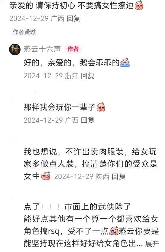 正文摘要:官方回應玩家建議:堅持遊戲本質 針對玩家關於遊戲風格的討論,《燕雲十六聲》官方明確表示將堅持遊戲本質,不會走向女性角色邊緣化的方向。同時,也有玩家建議在服裝設計上多考慮女性玩家需求。 持續優化戰鬥體驗 戰鬥系統優化方面,專項戰鬥小組已完成「卸勢」機制的改進,使判定時間視窗更加精準,並根據難度等級進行相應調整。此外,遊戲團隊也持續針對BOSS戰進行體驗優化。 以下廣告滑動後還有帖子內容var custom_call_MIR = function (params) {if ( params === null || params.hasAd === false ) {var divRowSide;for (let index = 0; index < ONEADs.length; index++) {if (ONEADs[index].pub.player_mode === "mobile-inread") {divRowSide = ONEADs[index].pub.slotobj;}}var ins = document.createElement('ins');ins.className = 'clickforceads';ins.setAttribute('style', 'display:inline-block;');ins.setAttribute('data-ad-zone', '18264');divRowSide.appendChild(ins);var js = document.createElement('script');js.async = true;js.type = 'text/javascript';js.setAttribute('src', '//cdn.holmesmind.com/js/init.js');js.onload = function(){console.log('[ONEAD MIR] ClickForce Loaded');};divRowSide.appendChild(js);}};var _ONEAD = {};_ONEAD.pub = {};_ONEAD.pub.slotobj = document.getElementById("oneadMIRDFPTag");_ONEAD.pub.slots = ["div-onead-ad"];_ONEAD.pub.uid = "1000509";_ONEAD.pub.external_url = "https://onead.onevision.com.tw/";_ONEAD.pub.scopes = ["spotbuy", "speed"];_ONEAD.pub.player_mode_div = "div-onead-ad";_ONEAD.pub.player_mode = "mobile-inread";_ONEAD.pub.queryAdCallback = custom_call_MIR;var ONEAD_pubs = ONEAD_pubs || [];ONEAD_pubs.push(_ONEAD);var truvidScript = document.createElement('script'); truvidScript.async = true; truvidScript.setAttribute('data-cfasync','false'); truvidScript.type = 'text/javascript'; truvidScript.src = '//stg.truvidplayer.com/index.php?sub_user_id=597&widget_id=3309&playlist_id=2381&m=a&cb=' + (Math.random() * 10000000000000000); var currentScript = document.currentScript || document.scripts[document.scripts.length - 1]; currentScript.parentNode.insertBefore(truvidScript, currentScript.nextSibling); 常見問與答 Q1:《燕雲十六聲》對於服裝設計有什麼規劃? A1:官方表示將維持遊戲本質,不會走向邊緣化方向,並考慮女性玩家的需求。 Q2:新BOSS「天上來」有什麼特色? A2:該BOSS配備巨型單刃武器,擁有河伯座騎,將為玩家帶來連續進攻的挑戰。 Q3:遊戲最新的戰鬥系統優化包含哪些內容? A3:主要優化了「卸勢」機制的判定時間視窗,並根據難度進行匹配調整。 Q4:官方對於玩家反饋的態度如何? A4:官方積極回應玩家建議,承諾專注於遊戲本質開發。 Q5:遊戲目前正在進行哪些優化工作? A5:除了「卸勢」機制的改進外,也在持續優化BOSS戰的整體體驗。 👉 GM後台版 遊戲 推薦 ⬇️⬇️⬇️ 快速玩各種二次元動漫手遊app |
