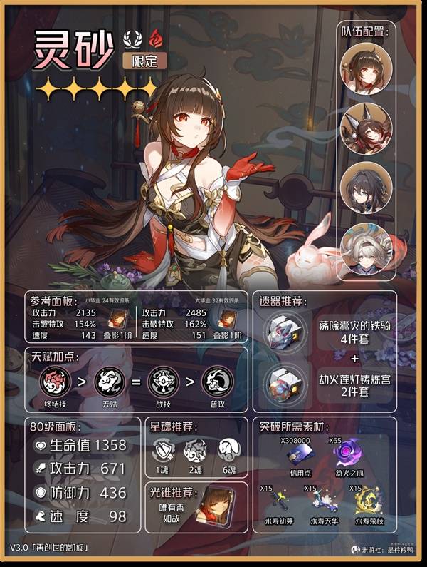 正文摘要:一、基本資訊 更新日期:2025/01/16 版本:3.0 二、角色定位分析 主要定位: - 擊破隊核心輔助 - 加拉赫上位替代 - 優秀的生存位選擇 特色優勢: 1. 0魂可用,1魂效果顯著提升 2. 優秀的削韌與治療能力 3. 適用於控制環境 4. 具備群攻技能組 三、培養推薦 遺器搭配: - 主流:4件鐵騎 + 2件劫火 - 主詞條: - 衣:治療加成 - 鞋:速度 - 球:攻擊力 - 繩:充能效率 詞條優先級: 擊破特攻 > 速度 > 攻擊力 > 其他屬性 四、光錐選擇 推薦光錐: 1. 最佳:唯有香如故(專屬光錐) 2. 五星替代:棺的回響 3. 四星替代: - 一場術後對話 - 何物為真 以下廣告滑動後還有帖子內容var custom_call_MIR = function (params) {if ( params === null || params.hasAd === false ) {var divRowSide;for (let index = 0; index < ONEADs.length; index++) {if (ONEADs[index].pub.player_mode === "mobile-inread") {divRowSide = ONEADs[index].pub.slotobj;}}var ins = document.createElement('ins');ins.className = 'clickforceads';ins.setAttribute('style', 'display:inline-block;');ins.setAttribute('data-ad-zone', '18264');divRowSide.appendChild(ins);var js = document.createElement('script');js.async = true;js.type = 'text/javascript';js.setAttribute('src', '//cdn.holmesmind.com/js/init.js');js.onload = function(){console.log('[ONEAD MIR] ClickForce Loaded');};divRowSide.appendChild(js);}};var _ONEAD = {};_ONEAD.pub = {};_ONEAD.pub.slotobj = document.getElementById("oneadMIRDFPTag");_ONEAD.pub.slots = ["div-onead-ad"];_ONEAD.pub.uid = "1000509";_ONEAD.pub.external_url = "https://onead.onevision.com.tw/";_ONEAD.pub.scopes = ["spotbuy", "speed"];_ONEAD.pub.player_mode_div = "div-onead-ad";_ONEAD.pub.player_mode = "mobile-inread";_ONEAD.pub.queryAdCallback = custom_call_MIR;var ONEAD_pubs = ONEAD_pubs || [];ONEAD_pubs.push(_ONEAD);var truvidScript = document.createElement('script'); truvidScript.async = true; truvidScript.setAttribute('data-cfasync','false'); truvidScript.type = 'text/javascript'; truvidScript.src = '//stg.truvidplayer.com/index.php?sub_user_id=597&widget_id=3309&playlist_id=2381&m=a&cb=' + (Math.random() * 10000000000000000); var currentScript = document.currentScript || document.scripts[document.scripts.length - 1]; currentScript.parentNode.insertBefore(truvidScript, currentScript.nextSibling); 五、常見問題Q&A Q1:靈砂需要抽取魂魄嗎? A1:0魂可用,1魂效果更佳。 Q2:已有加拉赫是否需要抽取? A2:若已有6+5加拉赫可考慮暫緩。 Q3:專屬光錐是否必需? A3:可替代性強,非必需品。 Q4:適合什麼隊伍? A4:擊破隊最佳,追擊隊也可用。 Q5:遺器詞條如何選擇? A5:優先提升擊破特攻和速度。 六、使用建議 1. 根據隊伍需求選擇培養方向 2. 注重速度和充能效率 3. 合理搭配光錐 4. 靈活運用技能組合 👉 GM後台版 遊戲 推薦 ⬇️⬇️⬇️ 快速玩各種二次元動漫手遊app |
