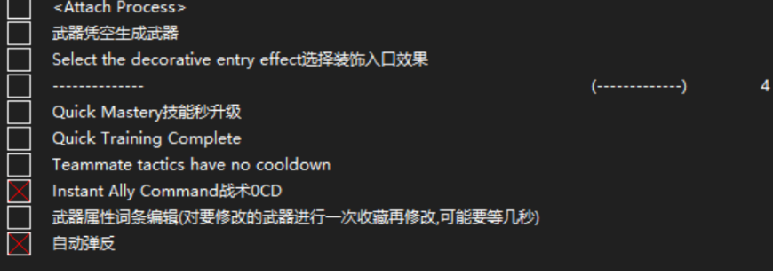 正文摘要:replyreload += ',' + 2370923; 版本:1.0.0 更新日期:20250117 ✦ 修改器功能說明 本次分享的修改器整合包包含以下實用功能: • 戰術小隊技能無冷卻時間 • 角色技能快速升級至滿級 • 自動完美弾反系統 ✦ 使用前準備 1. 下載並安裝 Cheat Engine 7.5 中文版 2. 下載整合功能CT檔案 3. 確保遊戲已正常運行 ✦ 安裝步驟 1. 開啟Cheat Engine 2. 載入下載的CT檔案 3. 選擇遊戲進程 4. 依需求開啟所需功能 ✦ 功能使用建議 • 建議依據個人遊玩習慣選擇性開啟功能 • 避免同時開啟過多功能以確保遊戲穩定性 • 建議先在安全區域測試各項功能 ✦ 下載連結 1. Cheat Engine 7.5 中文版: Free Download: https://www.game735.com/thread-377613-1-1.html 2. 功能整合包CT檔案: 所有站內附件皆會附上安全掃描報告請會員查看純淨度百分比後判斷使用(adsbygoogle = window.adsbygoogle || []).push({});相關檔案須知:取得檔案前,請先詳細閱讀文章內容避免不必要錯誤與誤會發生。也可多參考文章討論樓層內容了解附件檔案相關討論資訊。 【此文章部分內容隱藏中】 解除隱藏說明教學點擊下方 繼續閱讀文章 後請仔細觀看文章內容 並依照指示進行下一步最後完成解除隱藏後系統會回到此文章自動顯示隱藏內容~繼續閱讀 ✦ 常見問題Q&A Q1:使用修改器會影響遊戲存檔嗎? A1:一般不會影響存檔,但建議保持存檔備份習慣。 Q2:自動弾反功能的成功率如何? A2:成功率接近100%,但仍建議熟悉正常弾反操作。 Q3:技能升級功能會影響遊戲平衡性嗎? A3:會略微影響遊戲難度,建議根據個人喜好選擇使用。 Q4:修改器與遊戲版本相容性如何? A4:適用於目前最新版本,後續版本可能需要更新。 Q5:同時開啟所有功能會造成遊戲不穩定嗎? A5:建議根據需求選擇性開啟,避免同時使用過多功能。 👉 GM後台版 遊戲 推薦 ⬇️⬇️⬇️ 快速玩各種二次元動漫手遊appreplyreload += ',' + 2370923; |