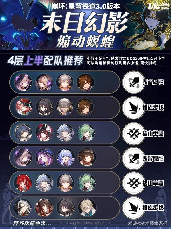 正文摘要:《崩壞星穹鐵道》末日幻影活動介紹 3.0版本末日幻影活動已開放,本篇攻略將針對煽動螟蝗的關卡,提供詳細的隊伍配置建議與通關策略。 👉 GM後台版 遊戲 推薦 ⬇️⬇️⬇️ 快速玩各種二次元動漫手遊app 《崩壞星穹鐵道》活動關卡展示 活動內容概覽: 《崩壞星穹鐵道》推薦隊伍配置 本次末日幻影活動中,針對煽動螟蝗關卡,建議採用不同的隊伍搭配策略,以達到最佳的通關效果。選擇合適的角色搭配和光錐組合,對於提升通關效率至關重要。 以下廣告滑動後還有帖子內容var custom_call_MIR = function (params) {if ( params === null || params.hasAd === false ) {var divRowSide;for (let index = 0; index < ONEADs.length; index++) {if (ONEADs[index].pub.player_mode === "mobile-inread") {divRowSide = ONEADs[index].pub.slotobj;}}var ins = document.createElement('ins');ins.className = 'clickforceads';ins.setAttribute('style', 'display:inline-block;');ins.setAttribute('data-ad-zone', '18264');divRowSide.appendChild(ins);var js = document.createElement('script');js.async = true;js.type = 'text/javascript';js.setAttribute('src', '//cdn.holmesmind.com/js/init.js');js.onload = function(){console.log('[ONEAD MIR] ClickForce Loaded');};divRowSide.appendChild(js);}};var _ONEAD = {};_ONEAD.pub = {};_ONEAD.pub.slotobj = document.getElementById("oneadMIRDFPTag");_ONEAD.pub.slots = ["div-onead-ad"];_ONEAD.pub.uid = "1000509";_ONEAD.pub.external_url = "https://onead.onevision.com.tw/";_ONEAD.pub.scopes = ["spotbuy", "speed"];_ONEAD.pub.player_mode_div = "div-onead-ad";_ONEAD.pub.player_mode = "mobile-inread";_ONEAD.pub.queryAdCallback = custom_call_MIR;var ONEAD_pubs = ONEAD_pubs || [];ONEAD_pubs.push(_ONEAD);var truvidScript = document.createElement('script'); truvidScript.async = true; truvidScript.setAttribute('data-cfasync','false'); truvidScript.type = 'text/javascript'; truvidScript.src = '//stg.truvidplayer.com/index.php?sub_user_id=597&widget_id=3309&playlist_id=2381&m=a&cb=' + (Math.random() * 10000000000000000); var currentScript = document.currentScript || document.scripts[document.scripts.length - 1]; currentScript.parentNode.insertBefore(truvidScript, currentScript.nextSibling); 配置類型說明內容活動名稱末日幻影-煽動螟蝗版本要求3.0版本難度等級挑戰型活動 《崩壞星穹鐵道》末日幻影常見問題Q&A Q1:本次末日幻影活動的主要特點是什麼? A1:這是3.0版本的新型挑戰活動,需要合理搭配隊伍進行通關。 Q2:如何選擇合適的隊伍配置? A2:根據關卡特性和敵人類型,選擇適合的角色組合。 Q3:活動有什麼特殊要求嗎? A3:需要針對煽動螟蝗的特點制定戰鬥策略。 Q4:如何提高通關效率? A4:合理搭配角色和光錐,注意隊伍之間的配合。 Q5:活動獎勵有哪些? A5:完成挑戰可獲得相應的活動獎勵。 |