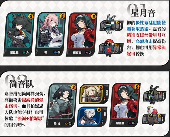 正文摘要:《絕區零》耀嘉音定位分析 耀嘉音作為以太屬性的支援型角色,能夠為隊伍提供全面的增益效果。本攻略將介紹兩種最優隊伍配置方案。 👉 GM後台版 遊戲 推薦 ⬇️⬇️⬇️ 快速玩各種二次元動漫手遊app 《絕區零》快攻流派配置 第一套推薦隊伍: 星見雅 + 月城柳 + 耀嘉音 隊伍特點: - 輸出節奏快速 - 提供極高輸出上限 - 機制相互配合 機制說明: 1. 月城柳提供極性紊亂效果 2. 快速為星見雅疊加被動效果 3. 耀嘉音提供全面攻擊力和傷害增益 《絕區零》強擊流派配置 第二套推薦隊伍: 簡杜 + 柏妮思/賽斯 + 耀嘉音 隊伍優勢: - 擁有高額攻擊力 - 強化強擊傷害效果 - 配合輸出效率提升 以下廣告滑動後還有帖子內容var custom_call_MIR = function (params) {if ( params === null || params.hasAd === false ) {var divRowSide;for (let index = 0; index < ONEADs.length; index++) {if (ONEADs[index].pub.player_mode === "mobile-inread") {divRowSide = ONEADs[index].pub.slotobj;}}var ins = document.createElement('ins');ins.className = 'clickforceads';ins.setAttribute('style', 'display:inline-block;');ins.setAttribute('data-ad-zone', '18264');divRowSide.appendChild(ins);var js = document.createElement('script');js.async = true;js.type = 'text/javascript';js.setAttribute('src', '//cdn.holmesmind.com/js/init.js');js.onload = function(){console.log('[ONEAD MIR] ClickForce Loaded');};divRowSide.appendChild(js);}};var _ONEAD = {};_ONEAD.pub = {};_ONEAD.pub.slotobj = document.getElementById("oneadMIRDFPTag");_ONEAD.pub.slots = ["div-onead-ad"];_ONEAD.pub.uid = "1000509";_ONEAD.pub.external_url = "https://onead.onevision.com.tw/";_ONEAD.pub.scopes = ["spotbuy", "speed"];_ONEAD.pub.player_mode_div = "div-onead-ad";_ONEAD.pub.player_mode = "mobile-inread";_ONEAD.pub.queryAdCallback = custom_call_MIR;var ONEAD_pubs = ONEAD_pubs || [];ONEAD_pubs.push(_ONEAD);var truvidScript = document.createElement('script'); truvidScript.async = true; truvidScript.setAttribute('data-cfasync','false'); truvidScript.type = 'text/javascript'; truvidScript.src = '//stg.truvidplayer.com/index.php?sub_user_id=597&widget_id=3309&playlist_id=2381&m=a&cb=' + (Math.random() * 10000000000000000); var currentScript = document.currentScript || document.scripts[document.scripts.length - 1]; currentScript.parentNode.insertBefore(truvidScript, currentScript.nextSibling); 隊伍類型核心角色打法特點快攻流星見雅連段輸出強擊流簡杜爆發傷害輔助位耀嘉音全面增益 《絕區零》隊伍配置Q&A Q1:快攻流和強擊流該如何選擇? A1:根據已有角色和喜好的戰鬥風格選擇,兩種流派都很強力。 Q2:賽斯和柏妮思如何選擇? A2:兩者都能配合簡杜,可根據實際擁有情況決定。 Q3:耀嘉音在隊伍中的定位是什麼? A3:主要提供全隊攻擊力和傷害增益,是核心輔助角色。 Q4:隊伍站位有特別要求嗎? A4:建議將輸出角色放在前排,耀嘉音放在後排提供支援。 Q5:這些陣容適合什麼內容? A5:適合大多數遊戲內容,特別是需要高輸出的場景。 |