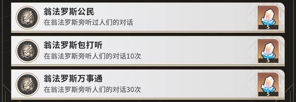 《崩壞星穹鐵道》旁聽成就基本說明 翁法羅斯萬事通成就需要玩家完成30次旁聽,本攻略將詳細說明所有旁聽點位的具體位置。 區域點位數量特殊說明主要街道多個點位容易尋找隱蔽角落少量點位需仔細搜索建築內