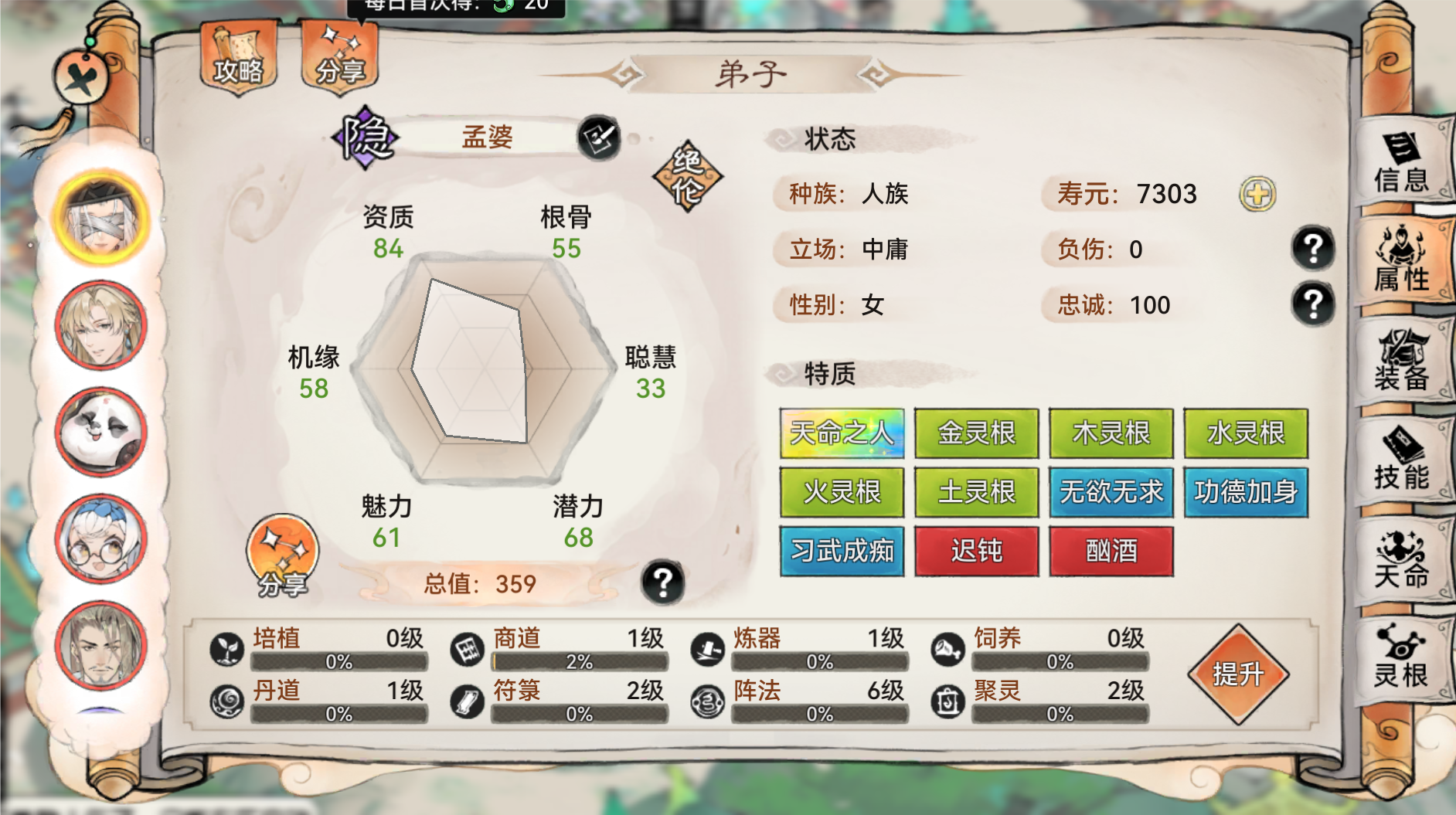正文摘要:五行弟子培養完整攻略 - 從入門到精通 前言概述 進入修仙界後,如何挑選合適的弟子是許多玩家的困擾。本攻略將詳細解析五行弟子的選擇標準,包含靈根、詞條、體質等多個面向的考量。 為何選擇五行弟子 1. 五行塔系統 - 偏向防禦效果 - 效果抵抗類型 重點問題解析 1. 體質問題: - 不必過分執著體質 - 好天賦或怪僻同樣有效 - 體質視為強化詞條 2. 職業選擇: - 五行劍修適合前期 - 五行禪修偏重防禦 - 五行兵家綜合能力強 3. 根骨要求: - 60-80根骨即可使用 - 主要影響泡池效果 - 仙緣弟子優先考慮 五行弟子對照表 職業類型主要特點適用階段五行劍修輸出暴擊前期過渡五行禪修防禦耐久穩定發展五行兵家輸出防禦後期發展 以下廣告滑動後還有帖子內容var custom_call_MIR = function (params) {if ( params === null || params.hasAd === false ) {var divRowSide;for (let index = 0; index < ONEADs.length; index++) {if (ONEADs[index].pub.player_mode === "mobile-inread") {divRowSide = ONEADs[index].pub.slotobj;}}var ins = document.createElement('ins');ins.className = 'clickforceads';ins.setAttribute('style', 'display:inline-block;');ins.setAttribute('data-ad-zone', '18264');divRowSide.appendChild(ins);var js = document.createElement('script');js.async = true;js.type = 'text/javascript';js.setAttribute('src', '//cdn.holmesmind.com/js/init.js');js.onload = function(){console.log('[ONEAD MIR] ClickForce Loaded');};divRowSide.appendChild(js);}};var _ONEAD = {};_ONEAD.pub = {};_ONEAD.pub.slotobj = document.getElementById("oneadMIRDFPTag");_ONEAD.pub.slots = ["div-onead-ad"];_ONEAD.pub.uid = "1000509";_ONEAD.pub.external_url = "https://onead.onevision.com.tw/";_ONEAD.pub.scopes = ["spotbuy", "speed"];_ONEAD.pub.player_mode_div = "div-onead-ad";_ONEAD.pub.player_mode = "mobile-inread";_ONEAD.pub.queryAdCallback = custom_call_MIR;var ONEAD_pubs = ONEAD_pubs || [];ONEAD_pubs.push(_ONEAD);var truvidScript = document.createElement('script'); truvidScript.async = true; truvidScript.setAttribute('data-cfasync','false'); truvidScript.type = 'text/javascript'; truvidScript.src = '//stg.truvidplayer.com/index.php?sub_user_id=597&widget_id=3309&playlist_id=2381&m=a&cb=' + (Math.random() * 10000000000000000); var currentScript = document.currentScript || document.scripts[document.scripts.length - 1]; currentScript.parentNode.insertBefore(truvidScript, currentScript.nextSibling); 常見問題Q&A Q1: 為什麼要選擇五行弟子? A1: 五行弟子可以進入所有五行塔,且功法搭配更靈活。 Q2: 根骨要求是否必須90以上? A2: 不必,60-80根骨即可使用,主要影響泡池效果。 Q3: 是否一定要有體質才能用? A3: 不必執著體質,好的天賦或怪僻同樣有效。 Q4: 過渡期用什麼職業最好? A4: 可根據個人喜好選擇,劍修適合前期,禪修穩定性強。 Q5: 詞條選擇有什麼建議? A5: 根據職業特點選擇,劍修注重輸出詞條,禪修偏向防禦。 👉 GM後台版 遊戲 推薦 ⬇️⬇️⬇️ 快速玩各種二次元動漫手遊app 本攻略強調不必過分追求完美屬性,重點在於選擇適合自己的培養方向。 |