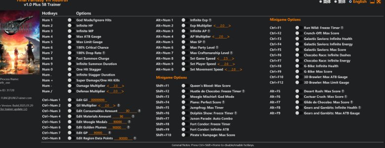 正文摘要:replyreload += ',' + 2372093; 遊戲資訊 🔸 遊戲版本:v1.0+ 🔸 更新日期:2025.01.29 🔸 支援功能:58種修改選項 修改器主要功能 ☑️ 基礎功能(數字鍵) - 無敵模式 (Num 1) - HP/MP無限 (Num 2/3) - ATB/極限技條最大值 (Num 4/5) - 必定暴擊/掉寶率100% (Num 6/7) - 召喚獸快速充能/持續時間無限 (Num 8/9) - 一擊破防/破防持續無限 (Num 0/.) - 超級傷害/一擊必殺 (Num +) - 傷害/防禦倍率調整 (Num -//) ☑️ 資源修改(Ctrl+數字鍵) - 自訂金錢/素材數量 - 莫古利勳章/黃金羽毛修改 - GP點數/區域資料點數調整 ☑️ 能力提升(Alt+數字鍵) - 經驗值/AP無限 - SP最大值 - 隊伍等級/工藝等級最大 - 遊戲/角色/移動速度調整 小遊戲輔助功能 ☑️ Shift+F鍵系列 - 女王紙牌:最高分數 - 陸行鳥競賽:時間凍結 - 莫古利惡作劇:無敵模式 - 鋼琴演奏:完美分數 - 海豚表演:時間凍結 - 更多小遊戲輔助功能... 下載連結 🔸 Free Download: Final Fantasy VII Rebirth v1.0 Plus 58 Trainer.exe 所有站內附件皆會附上安全掃描報告請會員查看純淨度百分比後判斷使用(adsbygoogle = window.adsbygoogle || []).push({});相關檔案須知:取得檔案前,請先詳細閱讀文章內容避免不必要錯誤與誤會發生。也可多參考文章討論樓層內容了解附件檔案相關討論資訊。 【此文章部分內容隱藏中】 解除隱藏說明教學點擊下方 繼續閱讀文章 後請仔細觀看文章內容 並依照指示進行下一步最後完成解除隱藏後系統會回到此文章自動顯示隱藏內容~繼續閱讀 常見問題Q&A Q1:修改器是否支援最新版本? A1:支援v1.0+版本,建議保持遊戲版本更新。 Q2:使用修改器會影響遊戲存檔嗎? A2:建議使用前先備份存檔,以確保遊戲數據安全。 Q3:為什麼某些功能無法使用? A3:請確認是否以管理員身分執行修改器。 Q4:修改器可以同時開啟多個功能嗎? A4:可以,但建議不要同時開啟太多功能,以免遊戲不穩定。 Q5:使用修改器會被封號嗎? A5:建議僅在單機模式下使用,避免在線上模式使用。 👉 GM後台版 遊戲 推薦 ⬇️⬇️⬇️ 快速玩各種二次元動漫手遊appreplyreload += ',' + 2372093; |
