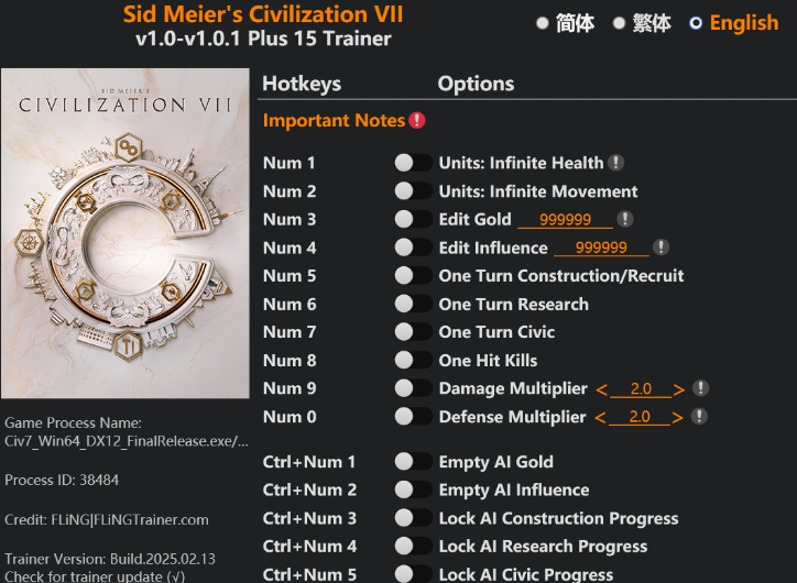 正文摘要:replyreload += ',' + 2373661; 更新資訊 ☑️ 遊戲版本:v1.0-v1.0.1+ ☑️ 更新日期:20250213 遊戲介紹 《文明帝國VII》是一款深受玩家喜愛的回合制策略遊戲。本次更新提供全新的修改器功能,幫助玩家在單人模式中獲得更好的遊戲體驗。 修改器功能說明 本修改器提供15項強大功能: ☑️ 基礎功能 - Num 1:單位無限生命值 - Num 2:單位無限移動力 - Num 3:修改金錢數量 - Num 4:修改影響力 - Num 5:建築/徵兵一回合完成 ☑️ 進階功能 - Num 6:科技研究一回合完成 - Num 7:市政發展一回合完成 - Num 8:一擊必殺 - Num 9:傷害倍率提升 - Num 0:防禦倍率提升 ☑️ AI控制功能 - Ctrl+Num 1:清空AI金錢 - Ctrl+Num 2:清空AI影響力 - Ctrl+Num 3:鎖定AI建設進度 - Ctrl+Num 4:鎖定AI研究進度 - Ctrl+Num 5:鎖定AI市政進度 使用注意事項 1. 本遊戲具有反作弊偵測系統,即使在單人模式下也會運作 2. 使用修改器可能導致單位顯示異常,移動後位置更新會有延遲 3. 如遇到顯示問題,請關閉修改器並重新啟動遊戲 下載連結 Free Download: Sid Meiers Civilization VII 1.0-v1.0.1 Plus 15 Trainer.exe 所有站內附件皆會附上安全掃描報告請會員查看純淨度百分比後判斷使用(adsbygoogle = window.adsbygoogle || []).push({});相關檔案須知:取得檔案前,請先詳細閱讀文章內容避免不必要錯誤與誤會發生。也可多參考文章討論樓層內容了解附件檔案相關討論資訊。 【此文章部分內容隱藏中】 解除隱藏說明教學點擊下方 繼續閱讀文章 後請仔細觀看文章內容 並依照指示進行下一步最後完成解除隱藏後系統會回到此文章自動顯示隱藏內容~繼續閱讀 常見問題Q&A Q1:為什麼我的單位移動後畫面沒有即時更新? A1:這是修改器已知的顯示問題,實際位置已經更新,重啟遊戲即可解決。 Q2:修改器能在多人模式使用嗎? A2:不建議在多人模式使用,可能會觸發遊戲的反作弊系統。 Q3:使用修改器會影響遊戲存檔嗎? A3:建議在使用修改器前先備份存檔,以防萬一。 Q4:修改器支援正版遊戲嗎? A4:是的,支援正版遊戲,但請注意遊戲版本需與修改器版本相符。 Q5:如何確認修改器是否正常運作? A5:啟動修改器後,可以透過嘗試修改金錢數量來測試功能是否正常。 👉 GM後台版 遊戲 推薦 ⬇️⬇️⬇️ 快速玩各種二次元動漫手遊appreplyreload += ',' + 2373661; |
