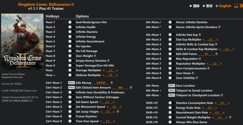 正文摘要:replyreload += ',' + 2373662;《天國降臨:救贖2》修改器風靈月影- 41項超強功能完整版|無敵/無限金錢/技能點數/免救世酒存檔|完整中文教學 ☑️ 版本資訊 更新日期:20250213 適用版本:天國降臨:救贖2 v1.1.1+ 修改器功能列表 基礎功能: - 無敵模式 (Num 1) - 無限生命值 (Num 2) - 無限耐力 (Num 3) - 無限體力 (Num 4) - 無限飽食度 (Num 5) 戰鬥相關: - 無傷害狀態 (Num 6) - 無掉落傷害 (Num 7) - 敵人耐力歸零 (Num 9) - 一擊必殺 (Num 0) - 傷害倍率調整 (Num .) - 防禦倍率調整 (Num +) 遊戲輔助: - 金錢修改 (Ctrl+Num 1) - 物品數量修改 (Ctrl+Num 2) - 物品永不損壞 (Ctrl+Num 3) - 免救世酒存檔 (Ctrl+Num 4) - 遊戲速度調整 (Ctrl+Num 5) 馬匹功能: - 馬匹無限耐力 (Alt+Num /) - 無限衝刺 (Alt+Num *) 角色成長: - 無限經驗值 (Alt+Num 1) - 經驗值倍率 (Alt+Num 2) - 技能點數修改 (Alt+Num 5) - 聲望最大化 (Alt+Num 6) 使用說明 1. 執行遊戲 2. 運行修改器 3. 使用對應快捷鍵開啟功能 下載連結 Free Download: 41項修改器完整版 所有站內附件皆會附上安全掃描報告請會員查看純淨度百分比後判斷使用(adsbygoogle = window.adsbygoogle || []).push({});相關檔案須知:取得檔案前,請先詳細閱讀文章內容避免不必要錯誤與誤會發生。也可多參考文章討論樓層內容了解附件檔案相關討論資訊。 【此文章部分內容隱藏中】 解除隱藏說明教學點擊下方 繼續閱讀文章 後請仔細觀看文章內容 並依照指示進行下一步最後完成解除隱藏後系統會回到此文章自動顯示隱藏內容~繼續閱讀 常見問題Q&A Q1:修改器會影響存檔嗎? A1:建議另存新檔,以防存檔損壞。 Q2:可以同時開啟多個功能嗎? A2:可以,但建議謹慎使用,避免遊戲崩潰。 Q3:遊戲更新後還能使用嗎? A3:需等待修改器更新才能支援新版本。 Q4:會被反作弊系統檢測到嗎? A4:單機遊戲使用安全,但請勿用於多人模式。 Q5:如何解決修改器無法運作? A5:請以管理員身分執行,並確認遊戲版本相符。 👉 GM後台版 遊戲 推薦 ⬇️⬇️⬇️ 快速玩各種二次元動漫手遊appreplyreload += ',' + 2373662; |