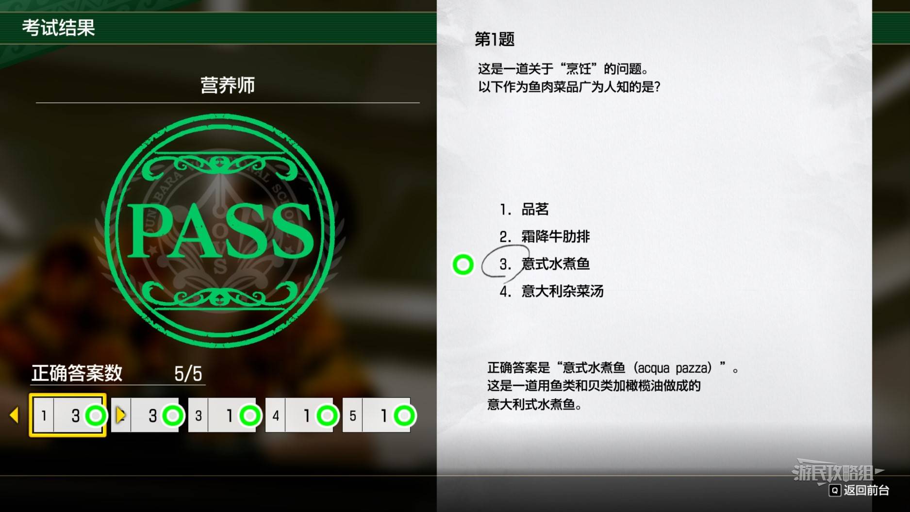 正文摘要:在《人中之龍8外傳 Pirates in Hawaii》中,營養師資格考試是一項重要的遊戲內容。本文將為各位玩家提供詳細的考試答案與解析,協助順利通過測驗。 營養師資格考試完整題庫與答案 👉 GM後台版 遊戲 推薦 ⬇️⬇️⬇️ 快速玩各種二次元動漫手遊app 讓我們深入了解每一道考題的詳細內容與正確答案: 烹飪相關題目 1. 使用意面、黑胡椒、芝士三種材料製作的料理是什麼? 正確答案:胡椒芝士意面 2. 土豆泥加入生奶油與湯底過濾製成的冷湯稱為什麼? 正確答案:維希冷湯 3. 著名的魚肉料理中,哪一道最廣為人知? 正確答案:意式水煮魚 4. 西班牙傳統美食中,以下哪一道最具代表性? 正確答案:塔帕斯 5. 北歐特色乳製品中,使用什麼動物的奶製作芝士? 正確答案:馴鹿 6. 土耳其傳統美食中,最具特色的是哪一道? 正確答案:旋轉烤肉 食品營養成分相關題目 1. 番茄中不含有哪種營養成分? 正確答案:維生素D 2. 青魚所含的不飽和脂肪酸是什麼? 正確答案:二十二碳六烯酸 3. 可溶於水的水溶性食物纖維是什麼? 正確答案:果膠 4. 辣椒等辛辣食材中,具有促進食慾和燃燒脂肪效果的成分是什麼? 正確答案:辣椒素 考試重點對照表 題目類型考點答案烹飪知識意面料理胡椒芝士意面營養成分維生素含量維生素D烹飪知識湯品製作維希冷湯營養成分脂肪酸二十二碳六烯酸營養成分食物纖維果膠 以下廣告滑動後還有帖子內容var custom_call_MIR = function (params) {if ( params === null || params.hasAd === false ) {var divRowSide;for (let index = 0; index < ONEADs.length; index++) {if (ONEADs[index].pub.player_mode === "mobile-inread") {divRowSide = ONEADs[index].pub.slotobj;}}var ins = document.createElement('ins');ins.className = 'clickforceads';ins.setAttribute('style', 'display:inline-block;');ins.setAttribute('data-ad-zone', '18264');divRowSide.appendChild(ins);var js = document.createElement('script');js.async = true;js.type = 'text/javascript';js.setAttribute('src', '//cdn.holmesmind.com/js/init.js');js.onload = function(){console.log('[ONEAD MIR] ClickForce Loaded');};divRowSide.appendChild(js);}};var _ONEAD = {};_ONEAD.pub = {};_ONEAD.pub.slotobj = document.getElementById("oneadMIRDFPTag");_ONEAD.pub.slots = ["div-onead-ad"];_ONEAD.pub.uid = "1000509";_ONEAD.pub.external_url = "https://onead.onevision.com.tw/";_ONEAD.pub.scopes = ["spotbuy", "speed"];_ONEAD.pub.player_mode_div = "div-onead-ad";_ONEAD.pub.player_mode = "mobile-inread";_ONEAD.pub.queryAdCallback = custom_call_MIR;var ONEAD_pubs = ONEAD_pubs || [];ONEAD_pubs.push(_ONEAD);var truvidScript = document.createElement('script'); truvidScript.async = true; truvidScript.setAttribute('data-cfasync','false'); truvidScript.type = 'text/javascript'; truvidScript.src = '//stg.truvidplayer.com/index.php?sub_user_id=597&widget_id=3309&playlist_id=2381&m=a&cb=' + (Math.random() * 10000000000000000); var currentScript = document.currentScript || document.scripts[document.scripts.length - 1]; currentScript.parentNode.insertBefore(truvidScript, currentScript.nextSibling); 常見問題Q&A Q1:營養師資格考試總共有幾題? A1:考試總共有10題,包含烹飪知識和食品營養成分兩大類型的題目。 Q2:考試是否有時間限制? A2:是的,每題都有答題時限,建議仔細閱讀題目後再選擇答案。 Q3:答錯題目會有什麼影響? A3:答錯題目需要重新作答,直到選擇正確答案才能進入下一題。 Q4:考試通過後會獲得什麼獎勵? A4:通過考試後可以獲得營養師資格證書,解鎖相關遊戲內容。 Q5:題目是否會隨機出現? A5:題目順序是固定的,熟悉答案可以幫助快速通過考試。 Q6:是否需要特別準備才能參加考試? A6:不需要特別準備,但建議先熟悉本攻略提供的答案。 |
