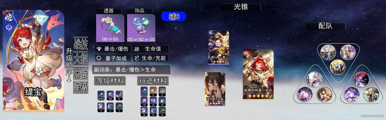 《崩壞星穹鐵道》全新角色詳解攻略 - 五星量子輔助與多屬性角色深度分析 緹寶 - 五星量子萬能輔助角色分析 桂乃芬是「四星虛無火持續傷害輸出」角色,專門用於施加「灼燒」持續傷害效果。她最適合與其他持