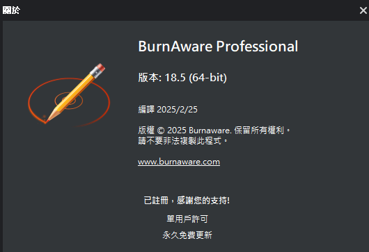 正文摘要:[系統工具] BurnAware Professional 18.5 專業光碟燒錄工具 多國語言免安裝版 (43MB@RAR@多空間) 【軟 體 名 稱】:BurnAware Professional 【軟 體 版 本】:18.5 【軟 體 語 言】:多國語言 【檔 案 大 小】:43MB 【版 本 類 型】:免安裝版 【作 業 系 統】:Windows 【更 新 日 期】:2025/02/26 軟體介紹 BurnAware是一款全方位的光碟燒錄工具,支援所有規格的光碟存儲類型,提供多種實用功能,包括資料光碟製作、影音光碟製作、ISO映像處理等。 主要功能 1. 光碟燒錄 - 資料光碟 - 啟動光碟 - 混合光碟 2. 影音光碟製作 - 音訊CD - MP3光碟 - DVD視訊 - BDMV/AVCHD 3. 映像檔處理 - ISO燒錄/複製 - 建立ISO映像 - 可啟動ISO映像 4. 其他功能 - 光碟複製 - 光碟擦除 - 資料還原 - 多份燒錄 以下廣告滑動後還有帖子內容var custom_call_MIR = function (params) {if ( params === null || params.hasAd === false ) {var divRowSide;for (let index = 0; index < ONEADs.length; index++) {if (ONEADs[index].pub.player_mode === "mobile-inread") {divRowSide = ONEADs[index].pub.slotobj;}}var ins = document.createElement('ins');ins.className = 'clickforceads';ins.setAttribute('style', 'display:inline-block;');ins.setAttribute('data-ad-zone', '18264');divRowSide.appendChild(ins);var js = document.createElement('script');js.async = true;js.type = 'text/javascript';js.setAttribute('src', '//cdn.holmesmind.com/js/init.js');js.onload = function(){console.log('[ONEAD MIR] ClickForce Loaded');};divRowSide.appendChild(js);}};var _ONEAD = {};_ONEAD.pub = {};_ONEAD.pub.slotobj = document.getElementById("oneadMIRDFPTag");_ONEAD.pub.slots = ["div-onead-ad"];_ONEAD.pub.uid = "1000509";_ONEAD.pub.external_url = "https://onead.onevision.com.tw/";_ONEAD.pub.scopes = ["spotbuy", "speed"];_ONEAD.pub.player_mode_div = "div-onead-ad";_ONEAD.pub.player_mode = "mobile-inread";_ONEAD.pub.queryAdCallback = custom_call_MIR;var ONEAD_pubs = ONEAD_pubs || [];ONEAD_pubs.push(_ONEAD);var truvidScript = document.createElement('script'); truvidScript.async = true; truvidScript.setAttribute('data-cfasync','false'); truvidScript.type = 'text/javascript'; truvidScript.src = '//stg.truvidplayer.com/index.php?sub_user_id=597&widget_id=3309&playlist_id=2381&m=a&cb=' + (Math.random() * 10000000000000000); var currentScript = document.currentScript || document.scripts[document.scripts.length - 1]; currentScript.parentNode.insertBefore(truvidScript, currentScript.nextSibling); 下載連結 KatFile: https://katfile.com/g8ghum8o9gf6 Fikper: https://fikper.com/9tRboI5UXo Fastdown: https://down.fast-down.com/xis81oxwta6m Mdiaload: https://down.mdiaload.com/q76h8cb35rmm Uploady: https://uploady.io/jihwo7nai1z8 REEdlink: https://frdl.is/4zzezg798kkk 👉 GM後台版 遊戲 推薦 ⬇️⬇️⬇️ 快速玩各種二次元動漫手遊app |