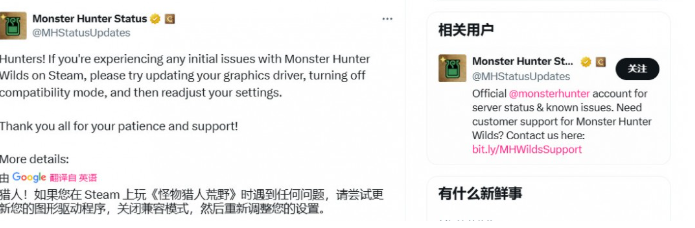 Capcom官方回應PC版優化問題 近日,Capcom官方通過客服推特回應了《魔物獵人:荒野》PC版優化問題。官方建議PC玩家更新顯卡驅動程式、關閉相容模式,並重新調整遊戲設定,以解決可能遇到的各種技術問題。 值