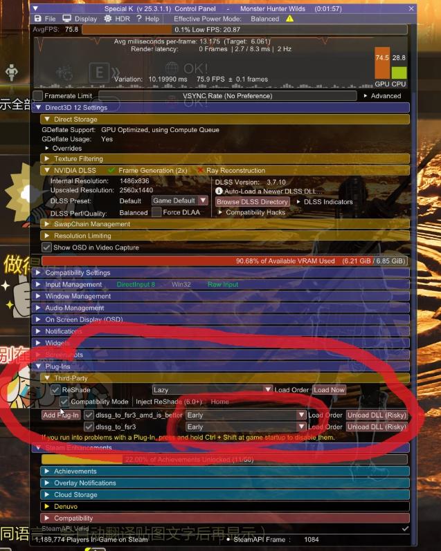 正文摘要:【軟 體 名 稱】:Monster Hunter: Wild DLSS Optimization MOD 【軟 體 語 言】:繁體中文/英文 【檔 案 大 小】:15MB 【壓 縮 密 碼】:無 【作 業 系 統】:Windows 10/11 【軟 體 說 明】:遊戲畫面優化工具 功能說明 ☑️ 2025.03.02更新內容: - 整合Special K框架 - DLSS到FSR3轉換支援 - 改善遊戲幀數表現 - 優化反作弊相容性 - 降低系統資源佔用 安裝需求 ☑️ 必要組件: 1. Special K框架 2. dlssg-to-fsr3通用插件 3. RE框架(REFramework) 下載連結:https://www.game735.com/thread-412969-1-1.html 安裝步驟 ☑️ 詳細教學: 1. 安裝Special K框架 2. 下載並解壓dlssg-to-fsr3檔案 3. 複製plugin_asi_loader內容至Special K\PlugIns資料夾 4. 使用Special K啟動遊戲 5. 按CTRL+SHIFT+BACKSPACE開啟設定介面 6. 在插件頁面加入以下檔案: - dlssg_to_fsr3.asi - dlssg_to_fsr3_amd_is_better.dll 7. 將兩個dll設定為"early"模式 8. 重啟遊戲完成設定 啟動優化 ☑️ Steam啟動參數設定: - 添加"SKIF %COMMAND%"參數實現自動載入 下載連結 DLSS優化補丁: https://pixeldrain.com/u/7G5wexST 以下廣告滑動後還有帖子內容var custom_call_MIR = function (params) {if ( params === null || params.hasAd === false ) {var divRowSide;for (let index = 0; index < ONEADs.length; index++) {if (ONEADs[index].pub.player_mode === "mobile-inread") {divRowSide = ONEADs[index].pub.slotobj;}}var ins = document.createElement('ins');ins.className = 'clickforceads';ins.setAttribute('style', 'display:inline-block;');ins.setAttribute('data-ad-zone', '18264');divRowSide.appendChild(ins);var js = document.createElement('script');js.async = true;js.type = 'text/javascript';js.setAttribute('src', '//cdn.holmesmind.com/js/init.js');js.onload = function(){console.log('[ONEAD MIR] ClickForce Loaded');};divRowSide.appendChild(js);}};var _ONEAD = {};_ONEAD.pub = {};_ONEAD.pub.slotobj = document.getElementById("oneadMIRDFPTag");_ONEAD.pub.slots = ["div-onead-ad"];_ONEAD.pub.uid = "1000509";_ONEAD.pub.external_url = "https://onead.onevision.com.tw/";_ONEAD.pub.scopes = ["spotbuy", "speed"];_ONEAD.pub.player_mode_div = "div-onead-ad";_ONEAD.pub.player_mode = "mobile-inread";_ONEAD.pub.queryAdCallback = custom_call_MIR;var ONEAD_pubs = ONEAD_pubs || [];ONEAD_pubs.push(_ONEAD);var truvidScript = document.createElement('script'); truvidScript.async = true; truvidScript.setAttribute('data-cfasync','false'); truvidScript.type = 'text/javascript'; truvidScript.src = '//stg.truvidplayer.com/index.php?sub_user_id=597&widget_id=3309&playlist_id=2381&m=a&cb=' + (Math.random() * 10000000000000000); var currentScript = document.currentScript || document.scripts[document.scripts.length - 1]; currentScript.parentNode.insertBefore(truvidScript, currentScript.nextSibling); 常見問題Q&A Q1: 安裝後遊戲無法啟動怎麼辦? A1: 請確認Special K框架安裝正確,並檢查插件路徑設定。 Q2: 如何確認DLSS優化是否生效? A2: 可透過遊戲內幀數計數器或Special K介面監控效能變化。 Q3: 會影響遊戲穩定性嗎? A3: 本補丁經過優化,一般不會影響遊戲穩定性,但建議保留原始檔案備份。 Q4: 為什麼某些設定無法調整? A4: 請確認是否以管理員權限執行Special K,並檢查遊戲相容性設定。 Q5: 更新遊戲後需要重新設定嗎? A5: 是的,遊戲更新後需要重新確認插件設定。 👉 GM後台版 遊戲 推薦 ⬇️⬇️⬇️ 快速玩各種二次元動漫手遊app |