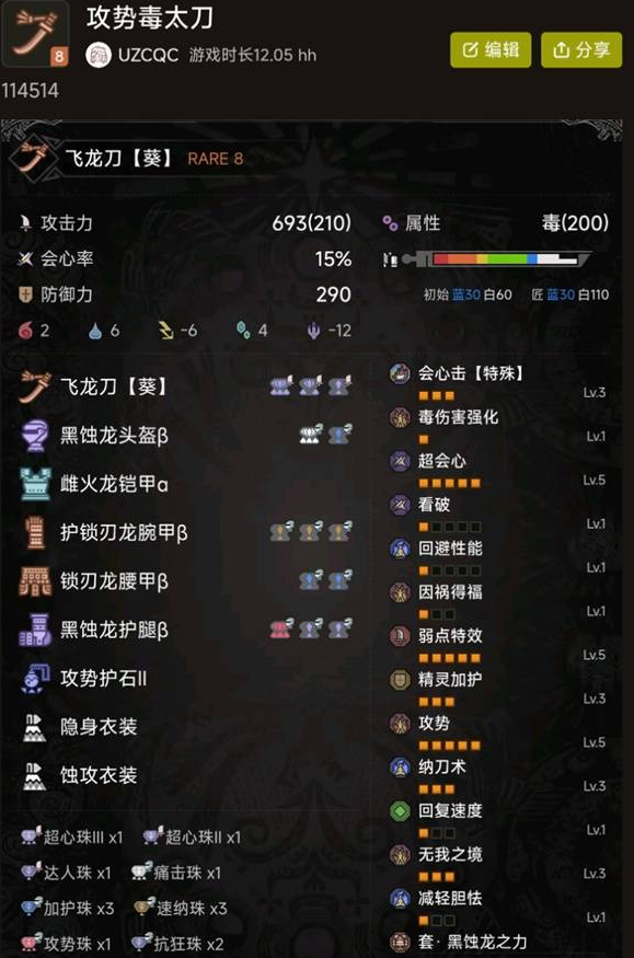 正文摘要:配裝展示 傷害加成分析 基礎傷害提升組合: - 武器特效:+15% - 看破技能:+4% - 弱點特效:+30% - 攻勢技能:+15% - 無我技能:+10% 總計基礎傷害提升:74% 額外傷害加成: - 傷口狀態:+20%(總計可達94%) - 狂龍裝克服前後不觸發弱特時:84%-99% 配裝建議 - 武器建議:毒屬性太刀 - 核心技能:攻勢、弱點特效、看破 - 輔助技能:無我、傷口 進階優化 如需提升會心率: - 將武器超會心5降為超會心1 - 將看破1提升至看破5 注意:此調整會略微降低整體傷害 以下廣告滑動後還有帖子內容var custom_call_MIR = function (params) {if ( params === null || params.hasAd === false ) {var divRowSide;for (let index = 0; index < ONEADs.length; index++) {if (ONEADs[index].pub.player_mode === "mobile-inread") {divRowSide = ONEADs[index].pub.slotobj;}}var ins = document.createElement('ins');ins.className = 'clickforceads';ins.setAttribute('style', 'display:inline-block;');ins.setAttribute('data-ad-zone', '18264');divRowSide.appendChild(ins);var js = document.createElement('script');js.async = true;js.type = 'text/javascript';js.setAttribute('src', '//cdn.holmesmind.com/js/init.js');js.onload = function(){console.log('[ONEAD MIR] ClickForce Loaded');};divRowSide.appendChild(js);}};var _ONEAD = {};_ONEAD.pub = {};_ONEAD.pub.slotobj = document.getElementById("oneadMIRDFPTag");_ONEAD.pub.slots = ["div-onead-ad"];_ONEAD.pub.uid = "1000509";_ONEAD.pub.external_url = "https://onead.onevision.com.tw/";_ONEAD.pub.scopes = ["spotbuy", "speed"];_ONEAD.pub.player_mode_div = "div-onead-ad";_ONEAD.pub.player_mode = "mobile-inread";_ONEAD.pub.queryAdCallback = custom_call_MIR;var ONEAD_pubs = ONEAD_pubs || [];ONEAD_pubs.push(_ONEAD);var truvidScript = document.createElement('script'); truvidScript.async = true; truvidScript.setAttribute('data-cfasync','false'); truvidScript.type = 'text/javascript'; truvidScript.src = '//stg.truvidplayer.com/index.php?sub_user_id=597&widget_id=3309&playlist_id=2381&m=a&cb=' + (Math.random() * 10000000000000000); var currentScript = document.currentScript || document.scripts[document.scripts.length - 1]; currentScript.parentNode.insertBefore(truvidScript, currentScript.nextSibling); 常見問題Q&A Q1: 為什麼選擇毒屬性太刀? A1: 毒屬性可以提供持續性傷害,配合高會心率更容易觸發毒素效果。 Q2: 弱點特效的觸發條件是什麼? A2: 需要攻擊怪物弱點部位才能觸發,建議熟悉各怪物弱點位置。 Q3: 無我技能的作用是什麼? A3: 提供額外10%傷害加成,同時增加迴避性能。 Q4: 為什麼要考慮調整超會心等級? A4: 依據個人喜好平衡會心率與傷害,可根據實戰需求調整。 Q5: 狂龍裝備有什麼特殊效果? A5: 可以克服某些特殊狀態下弱點特效無法觸發的問題。 👉 GM後台版 遊戲 推薦 ⬇️⬇️⬇️ 快速玩各種二次元動漫手遊app |