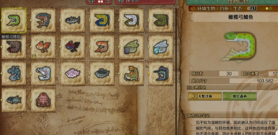 前言:《魔物獵人:荒野》釣魚系統深入解析 《魔物獵人:荒野》中共有20種魚類環境生物,分為15種小魚和5種大魚。遊戲中設計了一系列釣魚任務,不僅能增加遊戲體驗的多樣性,還能獲得特殊道具和完成圖鑑收集。本