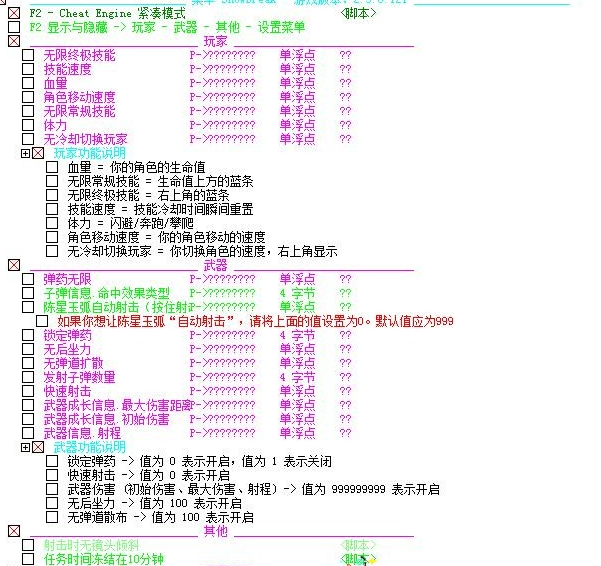 正文摘要:replyreload += ',' + 2376648; 【版本更新】:2025-03-08 【軟體名稱】:塵白禁區 SnowBreak CE修改器 【軟體語言】:繁體中文 【檔案大小】:12.3 MB 【壓縮密碼】:無 【作業系統】:Windows 10/11 64位元 【更新日期】:2025-03-08 軟體說明 專為《SnowBreak塵白禁區》開發的Cheat Engine修改器,提供多項遊戲輔助功能,介面完全繁體中文化,操作簡單直觀。 主要功能 ☑️ 無敵模式:角色無法受到傷害 ☑️ 傷害增強:提升角色輸出傷害 ☑️ 技能無CD:技能冷卻時間歸零 ☑️ 中文介面:完整繁體中文化 使用教學 1. 下載並安裝Cheat Engine 7.5 Cheat Engine (CE修改器) 7.5 漢化版 中文版 https://www.game735.com/thread-377613-1-1.html 2. 啟動遊戲主程式 3. 開啟Cheat Engine並選擇遊戲進程 4. 將修改檔(CT)拖曳至Cheat Engine視窗 5. 勾選要使用的功能或雙擊數值進行修改 下載連結 Free Download: Menu SnowBreak.zip 所有站內附件皆會附上安全掃描報告請會員查看純淨度百分比後判斷使用(adsbygoogle = window.adsbygoogle || []).push({});相關檔案須知:取得檔案前,請先詳細閱讀文章內容避免不必要錯誤與誤會發生。也可多參考文章討論樓層內容了解附件檔案相關討論資訊。 【此文章部分內容隱藏中】 解除隱藏說明教學點擊下方 繼續閱讀文章 後請仔細觀看文章內容 並依照指示進行下一步最後完成解除隱藏後系統會回到此文章自動顯示隱藏內容~繼續閱讀 常見問題Q&A Q1:使用修改器會被封號嗎? A1:建議在單機模式下使用,避免在多人連線時開啟。 Q2:為什麼功能無法正常運作? A2:請確認是否以系統管理員身份執行CE修改器。 Q3:遊戲更新後修改器失效怎麼辦? A3:請等待新版本修改器更新。 Q4:可以同時開啟多個功能嗎? A4:可以,但建議不要同時開啟太多功能以免遊戲不穩定。 Q5:修改數值有限制嗎? A5:建議在合理範圍內調整,過度修改可能導致遊戲崩潰。 👉 GM後台版 遊戲 推薦 ⬇️⬇️⬇️ 快速玩各種二次元動漫手遊appreplyreload += ',' + 2376648; |