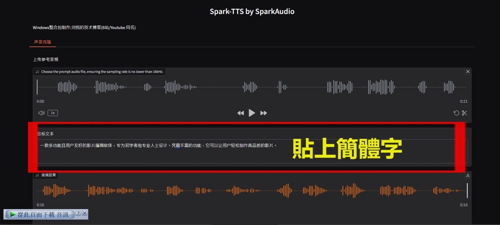 正文摘要:【版本資訊】2025.03.10 最新版 基本資訊 【軟體名稱】:Spark-TTS 進階麥克風錄音版 【軟體類型】:AI文字轉語音工具 【支援語言】:英文、簡體中文 【檔案大小】:6.70GB 【系統需求】:Windows 10/11 【處理器】:支援CPU推理 功能特色 • 直接音訊重建:無需複雜模型,直接從LLM輸出重建音訊 • 零樣本語音克隆:無需訓練即可複製說話者聲音 • 雙語支援:完整支援中文和英文轉換 • 可調整參數:性別、音調、語速等可自訂 • 簡化架構:基於Qwen2.5,運算效能優化 主要用途 1. 快速建立語音應用原型 2. 跨語言內容製作 3. 自訂語音助理開發 4. 教育培訓材料製作 5. 多媒體內容創作 下載連結 主要下載點 以下廣告滑動後還有帖子內容var custom_call_MIR = function (params) {if ( params === null || params.hasAd === false ) {var divRowSide;for (let index = 0; index < ONEADs.length; index++) {if (ONEADs[index].pub.player_mode === "mobile-inread") {divRowSide = ONEADs[index].pub.slotobj;}}var ins = document.createElement('ins');ins.className = 'clickforceads';ins.setAttribute('style', 'display:inline-block;');ins.setAttribute('data-ad-zone', '18264');divRowSide.appendChild(ins);var js = document.createElement('script');js.async = true;js.type = 'text/javascript';js.setAttribute('src', '//cdn.holmesmind.com/js/init.js');js.onload = function(){console.log('[ONEAD MIR] ClickForce Loaded');};divRowSide.appendChild(js);}};var _ONEAD = {};_ONEAD.pub = {};_ONEAD.pub.slotobj = document.getElementById("oneadMIRDFPTag");_ONEAD.pub.slots = ["div-onead-ad"];_ONEAD.pub.uid = "1000509";_ONEAD.pub.external_url = "https://onead.onevision.com.tw/";_ONEAD.pub.scopes = ["spotbuy", "speed"];_ONEAD.pub.player_mode_div = "div-onead-ad";_ONEAD.pub.player_mode = "mobile-inread";_ONEAD.pub.queryAdCallback = custom_call_MIR;var ONEAD_pubs = ONEAD_pubs || [];ONEAD_pubs.push(_ONEAD);var truvidScript = document.createElement('script'); truvidScript.async = true; truvidScript.setAttribute('data-cfasync','false'); truvidScript.type = 'text/javascript'; truvidScript.src = '//stg.truvidplayer.com/index.php?sub_user_id=597&widget_id=3309&playlist_id=2381&m=a&cb=' + (Math.random() * 10000000000000000); var currentScript = document.currentScript || document.scripts[document.scripts.length - 1]; currentScript.parentNode.insertBefore(truvidScript, currentScript.nextSibling); 使用教學 1. 下載並解壓縮檔案 2. 執行主程式 3. 選擇欲轉換的語言 4. 輸入文字內容 5. 調整語音參數 6. 點擊生成開始轉換 常見問題Q&A Q1:需要網路連線嗎? A1:本地運算,不需要網路連線。 Q2:支援哪些音訊格式? A2:支援WAV、MP3等常見格式。 Q3:可以批量處理嗎? A3:支援批次文字轉換功能。 Q4:佔用系統資源多嗎? A4:建議至少8GB RAM以上運行。 Q5:支援即時轉換嗎? A5:支援實時轉換,但需要較好的硬體配置。 👉 GM後台版 遊戲 推薦 ⬇️⬇️⬇️ 快速玩各種二次元動漫手遊app |