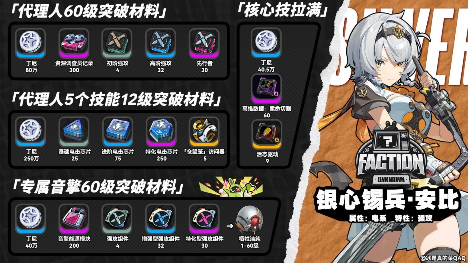 零號安比角色介紹 零號安比作為《絕區零》1.6版本上半卡池登場的角色,許多玩家對於其突破材料及專屬音擎的培養需求感到好奇。本攻略將詳細整理零號安比的所有突破材料資訊,幫助各位代理人提前做好準備。