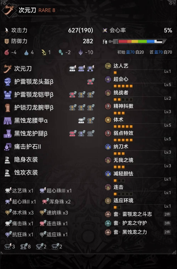 正文摘要:攻略版本:2025.03.14更新 【配裝展示】 👉 GM後台版 遊戲 推薦 ⬇️⬇️⬇️ 快速玩各種二次元動漫手遊app 【核心技能配置】 武器詞條: - 攻擊力+5 - 會心率+2 - 斬味+1 套裝技能效果: - 武器基礎:15%會心 - 狂龍症:15%會心 - 無我之境:10%會心 - 弱點特效:30%會心 - 精神抖擞:30%會心 - 體術5級 - 連擊1級(+8攻擊力) 【實戰測試數據】 - 對歷戰怪物平均傷害:80d - 整體會心率:約90% - 無需強走藥或盛宴蘑菇即可維持精神抖擞效果 【配裝特色對比】 配裝特點優點缺點體術流耐力消耗低/持續作戰攻擊技能較少傳統配裝攻擊力高/爆發強需要消耗道具 以下廣告滑動後還有帖子內容var custom_call_MIR = function (params) {if ( params === null || params.hasAd === false ) {var divRowSide;for (let index = 0; index < ONEADs.length; index++) {if (ONEADs[index].pub.player_mode === "mobile-inread") {divRowSide = ONEADs[index].pub.slotobj;}}var ins = document.createElement('ins');ins.className = 'clickforceads';ins.setAttribute('style', 'display:inline-block;');ins.setAttribute('data-ad-zone', '18264');divRowSide.appendChild(ins);var js = document.createElement('script');js.async = true;js.type = 'text/javascript';js.setAttribute('src', '//cdn.holmesmind.com/js/init.js');js.onload = function(){console.log('[ONEAD MIR] ClickForce Loaded');};divRowSide.appendChild(js);}};var _ONEAD = {};_ONEAD.pub = {};_ONEAD.pub.slotobj = document.getElementById("oneadMIRDFPTag");_ONEAD.pub.slots = ["div-onead-ad"];_ONEAD.pub.uid = "1000509";_ONEAD.pub.external_url = "https://onead.onevision.com.tw/";_ONEAD.pub.scopes = ["spotbuy", "speed"];_ONEAD.pub.player_mode_div = "div-onead-ad";_ONEAD.pub.player_mode = "mobile-inread";_ONEAD.pub.queryAdCallback = custom_call_MIR;var ONEAD_pubs = ONEAD_pubs || [];ONEAD_pubs.push(_ONEAD);var truvidScript = document.createElement('script'); truvidScript.async = true; truvidScript.setAttribute('data-cfasync','false'); truvidScript.type = 'text/javascript'; truvidScript.src = '//stg.truvidplayer.com/index.php?sub_user_id=597&widget_id=3309&playlist_id=2381&m=a&cb=' + (Math.random() * 10000000000000000); var currentScript = document.currentScript || document.scripts[document.scripts.length - 1]; currentScript.parentNode.insertBefore(truvidScript, currentScript.nextSibling); 【常見問題Q&A】 Q1:為什麼選擇體術5級配置? A1:可以不依賴強走藥和體術貓飯,更穩定地維持見切效果。 Q2:武器詞條如何選擇? A2:5攻2會1斬味是平衡傷害與實用性的最佳選擇。 Q3:精神抖擞的覆蓋率如何? A3:實測可達到接近全程覆蓋,無需額外道具輔助。 Q4:為什麼選擇連擊1級? A4:在有限的裝備空間下,性價比較高的攻擊力提升選擇。 Q5:剩餘1級孔位建議? A5:可根據需求裝備緩衝或適應等功能性裝飾珠。 Q6:白斬維持情況如何? A6:配合達人藝,通常能維持到區域轉換。 Q7:對比傳統配裝有何特色? A7:更注重持續戰鬥能力,減少道具依賴性。 |