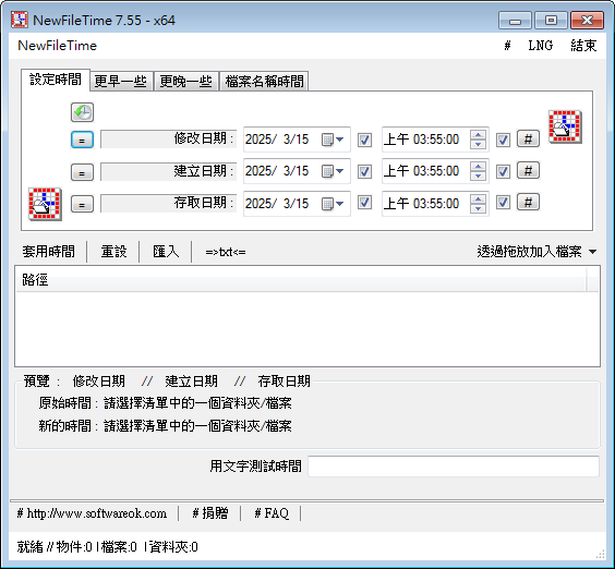 正文摘要:軟體資訊 【軟體名稱】:NewFileTime 【軟體語言】:多國語言(含繁體中文) 【檔案大小】:179 KB 【作業系統】:Windows 7/8/10/11 【版本類型】:免安裝版 【軟體官網】:https://www.softwareok.com/?seite=Microsoft/NewFileTime 軟體介紹 NewFileTime是一款專業的檔案時間修改工具,讓使用者能夠輕鬆修改檔案的各種時間屬性。無論是單一檔案或是整個資料夾,都能快速完成時間修改作業。 主要功能: ☑️ 支援批次修改多個檔案時間 ☑️ 可修改建立時間、修改時間、存取時間 ☑️ 拖曳操作介面直覺好用 ☑️ 支援資料夾遞迴處理 ☑️ 完整繁體中文介面 下載連結 Free Download: NewFileTime_x64.zip https://pixeldrain.com/u/NnsekQDx 以下廣告滑動後還有帖子內容var custom_call_MIR = function (params) {if ( params === null || params.hasAd === false ) {var divRowSide;for (let index = 0; index < ONEADs.length; index++) {if (ONEADs[index].pub.player_mode === "mobile-inread") {divRowSide = ONEADs[index].pub.slotobj;}}var ins = document.createElement('ins');ins.className = 'clickforceads';ins.setAttribute('style', 'display:inline-block;');ins.setAttribute('data-ad-zone', '18264');divRowSide.appendChild(ins);var js = document.createElement('script');js.async = true;js.type = 'text/javascript';js.setAttribute('src', '//cdn.holmesmind.com/js/init.js');js.onload = function(){console.log('[ONEAD MIR] ClickForce Loaded');};divRowSide.appendChild(js);}};var _ONEAD = {};_ONEAD.pub = {};_ONEAD.pub.slotobj = document.getElementById("oneadMIRDFPTag");_ONEAD.pub.slots = ["div-onead-ad"];_ONEAD.pub.uid = "1000509";_ONEAD.pub.external_url = "https://onead.onevision.com.tw/";_ONEAD.pub.scopes = ["spotbuy", "speed"];_ONEAD.pub.player_mode_div = "div-onead-ad";_ONEAD.pub.player_mode = "mobile-inread";_ONEAD.pub.queryAdCallback = custom_call_MIR;var ONEAD_pubs = ONEAD_pubs || [];ONEAD_pubs.push(_ONEAD);var truvidScript = document.createElement('script'); truvidScript.async = true; truvidScript.setAttribute('data-cfasync','false'); truvidScript.type = 'text/javascript'; truvidScript.src = '//stg.truvidplayer.com/index.php?sub_user_id=597&widget_id=3309&playlist_id=2381&m=a&cb=' + (Math.random() * 10000000000000000); var currentScript = document.currentScript || document.scripts[document.scripts.length - 1]; currentScript.parentNode.insertBefore(truvidScript, currentScript.nextSibling); 常見問題Q&A Q1:這個軟體可以一次修改多個檔案的時間嗎? A1:可以,支援批次處理功能,可以同時修改多個檔案。 Q2:需要安裝嗎? A2:不需要,這是免安裝版本,解壓縮即可使用。 Q3:支援最新版Windows 11嗎? A3:完全支援,相容於Windows 7以上所有作業系統。 Q4:可以修改資料夾內所有檔案的時間嗎? A4:可以,支援遞迴處理,能夠一次修改整個資料夾結構中的檔案。 Q5:介面是否有繁體中文? A5:有,軟體支援多國語言,包含完整的繁體中文介面。 注意事項: - 使用前建議先備份重要檔案 - 修改系統檔案時間可能會影響系統運作,請謹慎使用 - 本軟體僅供測試使用,請支持正版 👉 GM後台版 遊戲 推薦 ⬇️⬇️⬇️ 快速玩各種二次元動漫手遊app |