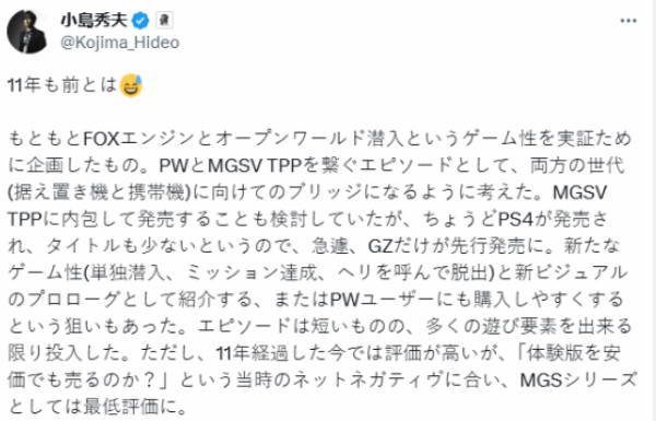 正文摘要:《潛龍諜影5:原爆點》發售至今已有11年,當時卻收穫系列最低評價。小島秀夫近日在社群媒體回顧幕後故事,解釋該作原本是為驗證FOX引擎和開放世界潛入玩法而策劃,但因PS4首發遊戲不足而緊急獨立發售,導致玩家誤認「連體驗版都要賣錢」,引發負面評價。 《原爆點》的原始定位:引擎與玩法的技術驗證 小島秀夫近日在社群媒體上分享了《潛龍諜影5:原爆點》的幕後故事,揭露了這款於2014年3月發售的遊戲為何在當時獲得系列最低評價的原因。根據小島的說法,《原爆點》最初的定位並非完整的系列正統作品,而是一個技術驗證項目。 「雖然章節內容較短,但我們盡可能加入了大量可玩元素。不過儘管如今時隔11年獲得高度評價,但當時卻遭遇了『連體驗版都要拿來賣錢?』的網路負面輿論,最終收穫了《潛龍諜影》系列史上最低評價。」小島如此總結道。 時間的洗禮:11年後的重新評價 值得注意的是,小島秀夫提到《原爆點》在11年後的今天已獲得了更高的評價。這種現象在遊戲界並不罕見,許多作品在發售初期因各種原因未被充分理解或欣賞,但隨著時間推移和玩家視角的轉變,最終獲得了重新評價的機會。 《原爆點》作為FOX引擎和開放世界潛入玩法的技術示範,確實為後來廣受好評的《潛龍諜影5:幻痛》奠定了基礎。從這個角度看,它在系列發展史上的價值和意義,遠超過當初評分所能反映的範疇。 以下廣告滑動後還有帖子內容var custom_call_MIR = function (params) {if ( params === null || params.hasAd === false ) {var divRowSide;for (let index = 0; index < ONEADs.length; index++) {if (ONEADs[index].pub.player_mode === "mobile-inread") {divRowSide = ONEADs[index].pub.slotobj;}}var ins = document.createElement('ins');ins.className = 'clickforceads';ins.setAttribute('style', 'display:inline-block;');ins.setAttribute('data-ad-zone', '18264');divRowSide.appendChild(ins);var js = document.createElement('script');js.async = true;js.type = 'text/javascript';js.setAttribute('src', '//cdn.holmesmind.com/js/init.js');js.onload = function(){console.log('[ONEAD MIR] ClickForce Loaded');};divRowSide.appendChild(js);}};var _ONEAD = {};_ONEAD.pub = {};_ONEAD.pub.slotobj = document.getElementById("oneadMIRDFPTag");_ONEAD.pub.slots = ["div-onead-ad"];_ONEAD.pub.uid = "1000509";_ONEAD.pub.external_url = "https://onead.onevision.com.tw/";_ONEAD.pub.scopes = ["spotbuy", "speed"];_ONEAD.pub.player_mode_div = "div-onead-ad";_ONEAD.pub.player_mode = "mobile-inread";_ONEAD.pub.queryAdCallback = custom_call_MIR;var ONEAD_pubs = ONEAD_pubs || [];ONEAD_pubs.push(_ONEAD);var truvidScript = document.createElement('script'); truvidScript.async = true; truvidScript.setAttribute('data-cfasync','false'); truvidScript.type = 'text/javascript'; truvidScript.src = '//stg.truvidplayer.com/index.php?sub_user_id=597&widget_id=3309&playlist_id=2381&m=a&cb=' + (Math.random() * 10000000000000000); var currentScript = document.currentScript || document.scripts[document.scripts.length - 1]; currentScript.parentNode.insertBefore(truvidScript, currentScript.nextSibling); 《潛龍諜影5:原爆點》幕後與評價問題Q&A Q1: 《潛龍諜影5:原爆點》在遊戲內容上有什麼特色?為何被認為是「體驗版」? A1: 《原爆點》最大的特色是引入了開放世界潛入玩法和全新的FOX引擎視覺效果,玩法上採用了「單人潛入、完成任務、呼叫直升機逃脫」的模式。然而,遊戲的主要內容僅包含一個古巴基地地圖和有限的任務數量,主線故事內容較短(可在2-3小時內完成),這使得許多玩家誤認為這只是《幻痛》的試玩版或體驗版。相較於系列其他作品豐富的劇情和多樣的場景,《原爆點》的規模確實較小,但小島團隊在有限空間中盡可能加入了多種玩法元素和挑戰。 Q2: 小島秀夫離開Konami與《潛龍諜影》系列有什麼關係? A2: 小島秀夫在2015年與Konami分道揚鑣,這發生在《潛龍諜影5:幻痛》發售前不久。雖然分離的具體原因雙方未詳細公開,但業界普遍認為與Konami戰略轉向、創意理念衝突以及《幻痛》開發期間的預算和時間管控問題有關。《原爆點》在2014年的反響不佳可能加劇了公司內部的緊張關係,但不是直接導致分離的主因。小島離開後成立了獨立工作室Kojima Productions,而《潛龍諜影》系列的IP仍屬於Konami所有,這也使得《幻痛》成為小島參與的最後一部《潛龍諜影》作品。 Q3: FOX引擎在遊戲技術上有什麼重要性? A3: FOX引擎是小島製作團隊專為《潛龍諜影》系列開發的遊戲引擎,首次在《原爆點》中全面展示。它的技術重要性主要體現在:先進的光照系統和天氣效果,能實現從日夜循環到暴風雨的逼真模擬;高品質的角色模型和動畫表現;開放世界環境的無縫載入和高效能運行;跨平台支援,能在PS3/PS4/Xbox 360/Xbox One/PC等多平台上保持一致的視覺效果。FOX引擎的技術成就為後來的《幻痛》奠定了基礎,也是《原爆點》在技術層面獲得認可的重要因素。 Q4: 為什麼《潛龍諜影5:原爆點》會在不同平台上有如此不同的評分? A4: 《原爆點》在不同平台上評分差異(PC版80分、Xbox One版76分、PS4版75分、PS3版66分)主要有幾個原因:首先,技術表現差異明顯,新一代主機和PC版本能更好發揮FOX引擎的視覺效果和流暢度;其次,不同平台的玩家期望值不同,PS3/Xbox 360世代的玩家可能對同樣價格的遊戲期望更完整的內容;第三,發售時間和定價策略在各平台略有不同,影響了評價標準;最後,PC版本通常能受益於社群模組和後續更新,延長了遊戲壽命。值得注意的是,隨著時間推移,玩家對遊戲的看法逐漸