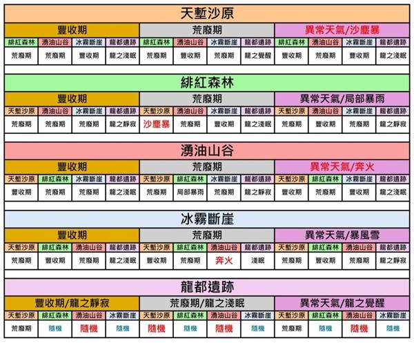 正文摘要:前言:掌握採集委託的效率秘訣 在《魔物獵人:荒野》的世界中,NPC採集委託是獲取重要資源的穩定來源。然而,遊戲中的環境變化會直接影響採集效率。本文將詳細解析各區域環境對採集量的影響機制,幫助獵人們最大化資源收益,提高遊戲體驗。 👉 GM後台版 遊戲 推薦 ⬇️⬇️⬇️ 快速玩各種二次元動漫手遊app 一、環境與採集系統基本原理 《魔物獵人:荒野》的採集系統受到遊戲環境的顯著影響,理解其運作機制對於高效採集至關重要。根據「chiangle」的研究,以下幾點是採集系統的核心原則: 1. 時間因素:遊戲時間(早晨、中午、黃昏、夜晚)不會影響材料收集量的星數預測。 2. 環境影響:材料收集量主要受該區域當前環境影響,而非時間。例如,在天險沙原的帳篷休息,就需對照天險沙原的環境表格。 3. 環境聯動:在一個區域選定環境休息後,其餘四個區域的環境會按固定規則變化,這意味著在單一區域重複休息,其他四個區域的材料收集量預測星數「不會變動」。 4. 龍都遺跡特例:該區域擁有特殊的環境變動規則,不建議在此區域刷材料。 二、環境對照系統詳解 龍都遺跡環境特性: 龍都遺跡環境變化規則特殊: 1. 在「豐收期/龍之靜寂」和「異常天氣/龍之覺醒」環境下,天險沙原固定為「荒廢期」。 2. 其餘各區均為三種環境隨機出現,可能導致採集效率不穩定。 四、NPC採集委託對照表 以下是NPC採集委託的詳細對照表,幫助獵人們選擇最佳採集環境: 1. 最優但不穩定:龍都遺跡_豐收期 2. 最優且穩定:緋紅森林_豐收期 3. 次優且穩定:天險沙原_豐收期、冰霧斷崖_豐收期 村民材料龍都遺跡_豐收期緋紅森林_豐收期天險沙原_豐收期冰霧斷崖_豐收期萊夏光蟲3311穆塔巴火藥草或雷光蟲2或22或23或32或2阿帕爾霜降草3/2/1233桃圓流水草3/2/1323薩巴爾光蟲2/2/0222 材料收集推薦策略: 理論上最優的是龍都遺跡_豐收期,但由於有三個區域是隨機環境,需要同時出現三區都是豐收期才有最大收益,所以非常依賴運氣。 最穩定且優質的選擇是緋紅森林_豐收期,可以獲得大量的光蟲,是多數獵人的理想選擇。 以下廣告滑動後還有帖子內容var custom_call_MIR = function (params) {if ( params === null || params.hasAd === false ) {var divRowSide;for (let index = 0; index < ONEADs.length; index++) {if (ONEADs[index].pub.player_mode === "mobile-inread") {divRowSide = ONEADs[index].pub.slotobj;}}var ins = document.createElement('ins');ins.className = 'clickforceads';ins.setAttribute('style', 'display:inline-block;');ins.setAttribute('data-ad-zone', '18264');divRowSide.appendChild(ins);var js = document.createElement('script');js.async = true;js.type = 'text/javascript';js.setAttribute('src', '//cdn.holmesmind.com/js/init.js');js.onload = function(){console.log('[ONEAD MIR] ClickForce Loaded');};divRowSide.appendChild(js);}};var _ONEAD = {};_ONEAD.pub = {};_ONEAD.pub.slotobj = document.getElementById("oneadMIRDFPTag");_ONEAD.pub.slots = ["div-onead-ad"];_ONEAD.pub.uid = "1000509";_ONEAD.pub.external_url = "https://onead.onevision.com.tw/";_ONEAD.pub.scopes = ["spotbuy", "speed"];_ONEAD.pub.player_mode_div = "div-onead-ad";_ONEAD.pub.player_mode = "mobile-inread";_ONEAD.pub.queryAdCallback = custom_call_MIR;var ONEAD_pubs = ONEAD_pubs || [];ONEAD_pubs.push(_ONEAD);var truvidScript = document.createElement('script'); truvidScript.async = true; truvidScript.setAttribute('data-cfasync','false'); truvidScript.type = 'text/javascript'; truvidScript.src = '//stg.truvidplayer.com/index.php?sub_user_id=597&widget_id=3309&playlist_id=2381&m=a&cb=' + (Math.random() * 10000000000000000); var currentScript = document.currentScript || document.scripts[document.scripts.length - 1]; currentScript.parentNode.insertBefore(truvidScript, currentScript.nextSibling); 《魔物獵人:荒野》採集委託常見問題Q&A Q1: 休息次數與採集量有什麼關係? A1: 根據研究,休息8次會讓委託材料達到16格,此時塔頭上會出現驚嘆號提示。合理安排休息次數可以最大化採集效率,避免不必要的時間浪費。 Q2: 「支援船」機制如何影響採集? A2: 休息後出現「支援船來了」提示後,再休息三次支援船會出發,再休息三次支援船會返回。支援船可以帶回額外資源,是增加物資的重要途徑。 Q3: 為什麼不建議在龍都遺跡刷材料? A3: 龍都遺跡環境變化規則特殊,其餘各區均為三種環境隨機出現,可能導致出現「天險沙原的沙塵暴」和「湧油山谷的奔火」,造成該次休息少獲得一次材料的收集,整體效率不穩定。 Q4: 「異常天氣」對採集有什麼影響? A4: 異常天氣如沙塵暴或奔火會使一位村民無法進行採集,導致收益降低。因此在選擇休息區域時應盡量避免可能引發異常天氣的環境組合。 Q5: 如何確保獲得最大量的光蟲? A5: 光蟲是遊戲中重要的資源,要獲得最大量的光蟲,建議在緋紅森林豐收期進行休息。此時萊夏和薩巴爾都會提供較高星級的光蟲收集量。 Q6: 遊戲時間(早、午、昏、夜)對採集有影響嗎? A6: 根據研究,遊戲時間不會影響材料收集量的星數預測。採集效率主要取決於區域環境而非時間因素。 Q7: 如何判斷當前是否為最佳採集時機? A7: 觀察各區域當前環境狀態,當主要採集區域處於「豐收期」且不會引發其他區域的異常天氣時,便是最佳採集時機。建議參考環境對照表做出判斷。 《魔物獵人:荒野》區域環境採集效益對比表 區域最佳環境優勢材料穩定性特殊注意事項緋紅森林豐收期光蟲、流水草高最穩定且高產的選擇天險沙原豐收期火藥草、雷光蟲中沙塵暴會減少村民採集湧