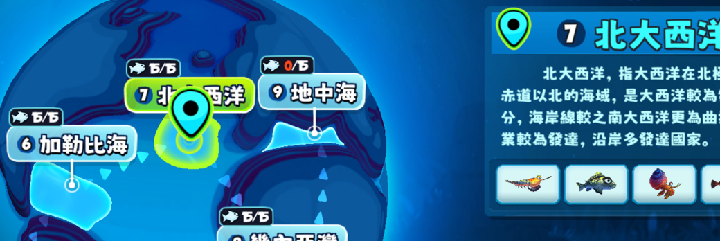 第七海域概述 第七海域,又稱「北大西洋」,是《魚吃魚:成長與進化》中較為高級的遊戲區域。根據最新消息,第八海域預計將在下個月開放,玩家可以拭目以待。要解鎖新海域,必須在當前海域收集齊12種魚類,這就需