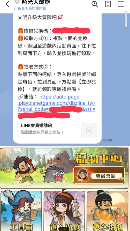 一、LINE官方帳號禮包福利介紹 想要在《時光大爆炸》中獲得豐富的遊戲資源,加入官方LINE帳號(@393fldbq)是最直接的方式。首次加入即可獲得一組專屬隱藏禮包碼! 兌換網址:https://gevents.playplanetgame.c