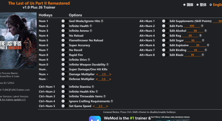 正文摘要:【軟 體 名 稱】:最後生還者2重製版修改器 【軟 體 語 言】:英文 【檔 案 大 小】:未標明 【壓 縮 密 碼】:無 【作 業 系 統】:Windows 【軟 體 說 明】:風靈月影(FLiNG)出品的《最後生還者2重製版》遊戲輔助工具,提供26種功能選項 最後生還者2重製版修改器 - 功能介紹 這款由知名修改器製作團隊風靈月影(FLiNG)推出的《最後生還者2重製版》修改器,適用於遊戲版本1.0+,最新更新日期為2025.04.07。修改器提供了26種強大功能,幫助玩家在末日世界中獲得更多遊戲樂趣和自由度。 功能選項列表 基本功能 (數字鍵): • Num 1 – 無敵模式/忽略傷害 • Num 2 – 無限生命值 • Num 3 – 無限彈藥 • Num 4 – 無需裝彈 • Num 5 – 火焰噴射器無需裝填 • Num 6 – 超級精準度 • Num 7 – 無後座力 • Num 8 – 快速射擊 • Num 9 – 無限匕首 • Num 0 – 武器無限耐久度 • Num . – 超級傷害/一擊必殺 • Num + – 傷害倍數調整 • Num - – 防禦倍數調整 進階功能 (Ctrl+數字鍵): • Ctrl+Num 1 – 無限耐力 • Ctrl+Num 2 – 無限醫療包 • Ctrl+Num 3 – 無限投擲物品 • Ctrl+Num 4 – 忽略製作需求 • Ctrl+Num 5 – 設置遊戲速度 資源編輯 (Alt+數字鍵): • Alt+Num 1 – 編輯補給品(技能點) • Alt+Num 2 – 編輯零件 • Alt+Num 3 – 編輯酒精 • Alt+Num 4 – 編輯布料 • Alt+Num 5 – 編輯糖 • Alt+Num 6 – 編輯炸藥 • Alt+Num 7 – 編輯綁帶 • Alt+Num 8 – 編輯刀片 使用方法 1. 下載修改器檔案 2. 解壓縮檔案(無需密碼) 3. 啟動遊戲 4. 運行修改器程式 5. 使用對應的熱鍵啟用或關閉各項功能 6. 享受遊戲的完整版體驗 下載連結 檔案名稱: The.Last.of.Us.Part.II.Remastered.v1.0.Plus.26.Trainer-FLiNG.zip 免費下載: 下載連結 以下廣告滑動後還有帖子內容var custom_call_MIR = function (params) {if ( params === null || params.hasAd === false ) {var divRowSide;for (let index = 0; index < ONEADs.length; index++) {if (ONEADs[index].pub.player_mode === "mobile-inread") {divRowSide = ONEADs[index].pub.slotobj;}}var ins = document.createElement('ins');ins.className = 'clickforceads';ins.setAttribute('style', 'display:inline-block;');ins.setAttribute('data-ad-zone', '18264');divRowSide.appendChild(ins);var js = document.createElement('script');js.async = true;js.type = 'text/javascript';js.setAttribute('src', '//cdn.holmesmind.com/js/init.js');js.onload = function(){console.log('[ONEAD MIR] ClickForce Loaded');};divRowSide.appendChild(js);}};var _ONEAD = {};_ONEAD.pub = {};_ONEAD.pub.slotobj = document.getElementById("oneadMIRDFPTag");_ONEAD.pub.slots = ["div-onead-ad"];_ONEAD.pub.uid = "1000509";_ONEAD.pub.external_url = "https://onead.onevision.com.tw/";_ONEAD.pub.scopes = ["spotbuy", "speed"];_ONEAD.pub.player_mode_div = "div-onead-ad";_ONEAD.pub.player_mode = "mobile-inread";_ONEAD.pub.queryAdCallback = custom_call_MIR;var ONEAD_pubs = ONEAD_pubs || [];ONEAD_pubs.push(_ONEAD);var truvidScript = document.createElement('script'); truvidScript.async = true; truvidScript.setAttribute('data-cfasync','false'); truvidScript.type = 'text/javascript'; truvidScript.src = '//stg.truvidplayer.com/index.php?sub_user_id=597&widget_id=3309&playlist_id=2381&m=a&cb=' + (Math.random() * 10000000000000000); var currentScript = document.currentScript || document.scripts[document.scripts.length - 1]; currentScript.parentNode.insertBefore(truvidScript, currentScript.nextSibling); 常見問題解答 問:這個修改器會影響遊戲存檔或導致遊戲崩潰嗎? 答:風靈月影的修改器通常相當穩定,但建議在使用前備份存檔,以防萬一出現意外情況。 問:修改器能在線上模式使用嗎? 答:不建議在任何線上模式中使用修改器,可能會導致帳號被封禁。此修改器主要用於單人遊戲模式。 問:如果遊戲更新了,這個修改器還能使用嗎? 答:遊戲更新後,修改器可能需要相應更新才能正常使用。請關注最新版本的修改器。 問:使用修改器會觸發遊戲的反作弊系統嗎? 答:單人模式下使用一般不會有問題,但仍建議謹慎使用,特別是在有成就或雲端存檔的情況下。 問:為什麼有些功能在我的遊戲中無效? 答:可能是遊戲版本不完全匹配,或者某些特定場景下功能受限。請確認你的遊戲版本是否與修改器兼容。 👉 GM後台版 遊戲 推薦 ⬇️⬇️⬇️ 快速玩各種二次元動漫手遊app |
