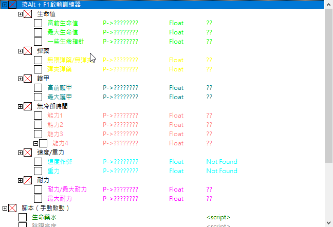 正文摘要:replyreload += ',' + 2381152; 【軟 體 名 稱】:Wayfinder (尋路者) Cheat Engine修改表 【軟 體 語 言】:中文/英文 【檔 案 大 小】:小型檔案 【壓 縮 密 碼】:無 【作 業 系 統】:Windows 【軟 體 說 明】:針對《尋路者》遊戲V1.2.0d版本的多功能Cheat Engine修改表,提供血量、彈藥、技能等多項修改功能 2025年4月9日更新:支援最新V1.2.0d版本! 《尋路者》Cheat Engine修改表介紹 各位玩家好!今天為大家帶來一款針對《尋路者》(Wayfinder)遊戲的全能Cheat Engine修改表。這款修改表提供了豐富的功能選項,讓您能夠自由調整遊戲體驗,輕鬆應對各種挑戰。無論您是想無壓力體驗劇情,還是希望測試不同的角色技能組合,這款修改表都能滿足您的需求。 修改表功能清單 基礎功能: - 血量/最大血量修改 - 彈藥/無需裝彈/即時重新裝彈 - 護甲值/韌性值修改 - 技能4無冷卻/永遠可用 - 移動速度修改(請謹慎使用!) - 重力修改 - 耐力/最大耐力(凍結) - 塔樓鑰匙修改 進階腳本(需手動啟用): - 生命藥水數量永不減少 - 跳躍高度修改(請謹慎使用!) 可修改"our_value"變數,目前預設值為70000 - 一擊必殺(功能不穩定,請謹慎使用!) - 即時滿級 在角色畫面使用任何一個共鳴,角色將立即升至30級 其他功能: - 僅供資訊顯示的指針(修改這些值僅會改變顯示效果) 使用方法 1. 首先確保您已安裝最新版本的Cheat Engine(建議使用7.6版本) 您可以從以下連結下載:《Cheat Engine》V7.6 中文化版超強記憶體解鎖工具 2. 下載本頁面提供的修改表檔案 (WayFinder_ZH.CT) 3. 啟動《尋路者》遊戲 4. 打開Cheat Engine,並通過「檔案」-「打開」選擇下載好的修改表 5. 在Cheat Engine中選擇《尋路者》遊戲進程 6. 勾選您需要啟用的功能 7. 回到遊戲中即可享受修改效果 注意事項 - 本修改表適用於《尋路者》V1.2.0d版本 - 部分功能(如速度修改、跳躍高度修改等)可能會導致遊戲不穩定,請謹慎使用 - 作者表示這是他的第一個公開修改表,如有功能異常,歡迎回報 - 作者未包含貨幣和物品修改功能,因為這些在Cheat Engine中較容易自行修改 - 請勿在多人遊戲中使用,以免違反遊戲規則 下載連結 WayFinder_ZH.CT 所有站內附件皆會附上安全掃描報告請會員查看純淨度百分比後判斷使用(adsbygoogle = window.adsbygoogle || []).push({});相關檔案須知:取得檔案前,請先詳細閱讀文章內容避免不必要錯誤與誤會發生。也可多參考文章討論樓層內容了解附件檔案相關討論資訊。 【此文章部分內容隱藏中】 解除隱藏說明教學點擊下方 繼續閱讀文章 後請仔細觀看文章內容 並依照指示進行下一步最後完成解除隱藏後系統會回到此文章自動顯示隱藏內容~繼續閱讀 常見問題解答 問:這個修改表會影響我的遊戲存檔嗎? 答:不會,Cheat Engine修改表只是暫時修改遊戲記憶體中的數值,不會永久改變您的遊戲存檔。關閉遊戲後,所有修改都會恢復原狀。 問:為什麼有些功能標註「請謹慎使用」? 答:這些功能(如速度修改、跳躍高度修改)可能會導致遊戲物理引擎異常,甚至可能使角色卡在地形中或穿越牆壁。建議小幅度調整這些數值,避免過度修改。 問:「一擊必殺」功能為什麼被標記為不穩定? 答:根據作者說明,這個功能可能無法對所有敵人生效,或者在某些情況下可能導致遊戲異常。如果您遇到問題,建議暫時關閉此功能。 問:遊戲更新後,這個修改表還能使用嗎? 答:遊戲更新可能會改變記憶體結構,導致修改表失效。本修改表專為V1.2.0d版本設計,如果遊戲版本更新,可能需要等待作者更新修改表或尋找新版本的修改表。 問:我可以請求添加更多功能嗎? 答:作者在說明中提到,如果有足夠多的人請求,他可能會在未來版本中添加更多功能,如貨幣和物品修改。您可以通過適當渠道向作者提出建議。 👉 GM後台版 遊戲 推薦 ⬇️⬇️⬇️ 快速玩各種二次元動漫手遊appreplyreload += ',' + 2381152; |