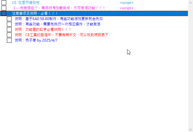正文摘要:replyreload += ',' + 2381187; 【軟 體 名 稱】:英雄立志傳三國志 CT修改器 【軟 體 語 言】:繁體中文 【檔 案 大 小】:1.2 MB 【壓 縮 密 碼】:無 【作 業 系 統】:Windows 7/10/11 【軟 體 說 明】:最新版本遊戲修改器,支援v0.58.80版本 修改器功能說明 本次更新日期:2025-04-09 版本:v0.58.80v4 主要功能特色: - 全武將能力值修改 - 資源數值調整 - 戰鬥相關數值修改 - 完全相容最新遊戲版本 使用教學 1. 下載並解壓縮CT修改器 2. 開啟遊戲至主畫面 3. 執行CT修改器 4. 選擇需要修改的數值 5. 套用設定即可生效 下載連結 Free Download: 英雄立志傳三國志CT修改器 所有站內附件皆會附上安全掃描報告請會員查看純淨度百分比後判斷使用(adsbygoogle = window.adsbygoogle || []).push({});相關檔案須知:取得檔案前,請先詳細閱讀文章內容避免不必要錯誤與誤會發生。也可多參考文章討論樓層內容了解附件檔案相關討論資訊。 【此文章部分內容隱藏中】 解除隱藏說明教學點擊下方 繼續閱讀文章 後請仔細觀看文章內容 並依照指示進行下一步最後完成解除隱藏後系統會回到此文章自動顯示隱藏內容~繼續閱讀 常見問題Q&A Q1:此修改器是否支援最新版本? A1:是的,完全支援v0.58.80版本。 Q2:使用修改器會影響遊戲存檔嗎? A2:建議在使用前先備份存檔,以確保遊戲資料安全。 Q3:為什麼執行修改器時出現錯誤? A3:請確認是否以系統管理員身份執行,並關閉防毒軟體。 Q4:修改數值後沒有立即生效? A4:請確認遊戲版本相符,並重新載入存檔。 Q5:修改器可以用在其他版本嗎? A5:本修改器僅支援v0.58.80版本,其他版本可能無法正常使用。 👉 GM後台版 遊戲 推薦 ⬇️⬇️⬇️ 快速玩各種二次元動漫手遊appreplyreload += ',' + 2381187; |
