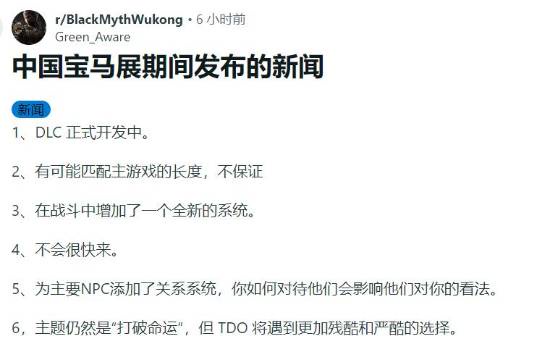 《黑神話悟空》DLC開發消息整理 知名遊戲UP主老戴透露,《黑神話:悟空》的DLC已經進入開發階段。這一消息被網友轉載至Reddit論壇,迅速成為熱門討論話題,吸引了大量國外玩家參與討論。 《黑神話悟空》DLC消