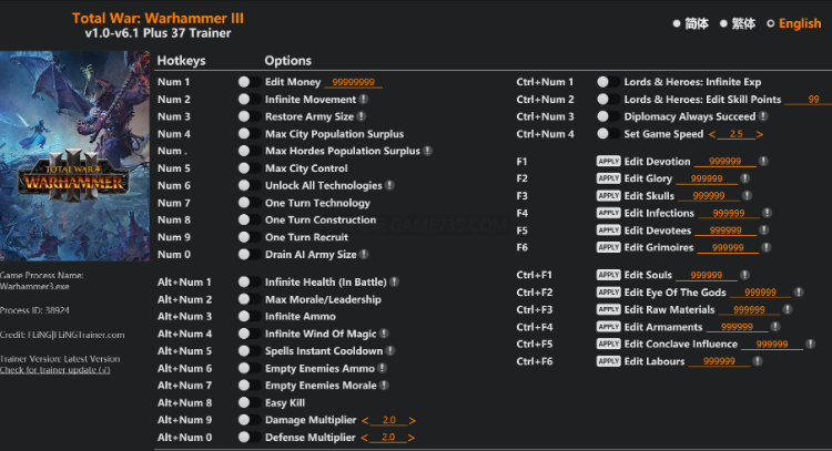 正文摘要:replyreload += ',' + 2382275; 【軟 體 名 稱】:全軍破敵:戰鎚3 修改器 【軟 體 語 言】:多國語言 【檔 案 大 小】:7MB 【壓 縮 密 碼】:無 【作 業 系 統】:Windows 【軟 體 說 明】:全軍破敵:戰鎚3 v1.0-v6.1+ 修改器,提供37項修改功能,助您輕鬆稱霸戰場! 《全軍破敵:戰鎚3》風靈月影修改器 本次更新:2025.04.16 遊戲版本:v1.0-v6.1+ 修改器功能 - Num 1 – 編輯金錢 - Num 2 – 無限移動力 - Num 3 – 恢復軍隊規模 - Num 4 – 最大城市人口盈餘 - Num . – 最大部落人口盈餘 - Num 5 – 最大城市控制 - Num 6 – 解鎖所有科技 - Num 7 – 一回合科技 - Num 8 – 一回合建造 - Num 9 – 一回合招募 - Num 0 – 削弱AI軍隊規模 - Alt+Num 1 – 無限生命 (戰鬥中) - Alt+Num 2 – 最大士氣/領導力 - Alt+Num 3 – 無限彈藥 - Alt+Num 4 – 無限魔法之風 - Alt+Num 5 – 法術瞬間冷卻 - Alt+Num 6 – 清空敵人彈藥 - Alt+Num 7 – 清空敵人士氣 - Alt+Num 8 – 輕易擊殺 - Alt+Num 9 – 傷害倍率 - Alt+Num 0 – 防禦倍率 - Ctrl+Num 1 – 領主 & 英雄:無限經驗 - Ctrl+Num 2 – 領主 & 英雄:編輯技能點數 - Ctrl+Num 3 – 外交永遠成功 - Ctrl+Num 4 – 設定遊戲速度 - F1 – 編輯虔誠 - F2 – 編輯榮耀 - F3 – 編輯骷髏 - F4 – 編輯感染 - F5 – 編輯信徒 - F6 – 編輯魔法書 - Ctrl+F1 – 編輯靈魂 - Ctrl+F2 – 編輯上帝之眼 - Ctrl+F3 – 編輯原材料 - Ctrl+F4 – 編輯軍備 - Ctrl+F5 – 編輯會議影響力 - Ctrl+F6 – 編輯勞工 使用說明 1. 先啟動遊戲,後啟動修改器。 2. 了解修改器上的熱鍵作用。 3. 在遊戲中按下相應的熱鍵,即可啟用對應的修改功能。 4. 部分修改項可能需要進入遊戲後才能生效。 下載連結 所有站內附件皆會附上安全掃描報告請會員查看純淨度百分比後判斷使用(adsbygoogle = window.adsbygoogle || []).push({});相關檔案須知:取得檔案前,請先詳細閱讀文章內容避免不必要錯誤與誤會發生。也可多參考文章討論樓層內容了解附件檔案相關討論資訊。 【此文章部分內容隱藏中】 解除隱藏說明教學點擊下方 繼續閱讀文章 後請仔細觀看文章內容 並依照指示進行下一步最後完成解除隱藏後系統會回到此文章自動顯示隱藏內容~繼續閱讀 Q&A 常見問題 - Q1: 修改器無法啟動怎麼辦? A1: 請確認遊戲版本是否與修改器相符,並檢查是否缺少必要的運行庫。 - Q2: 修改後遊戲崩潰怎麼辦? A2: 某些修改功能可能會導致遊戲不穩定,請嘗試關閉部分修改功能。 - Q3: 修改器是否會影響遊戲平衡? A3: 是的,修改器會大幅改變遊戲體驗,請謹慎使用。 - Q4: 如何解鎖所有科技? A4: 按下Num 6即可解鎖所有科技。 - Q5: 這個修改器是完整版的嗎? A5: 是的,本修改器提供完整版的37項修改功能。 👉 GM後台版 遊戲 推薦 ⬇️⬇️⬇️ 快速玩各種二次元動漫手遊appreplyreload += ',' + 2382275; |
