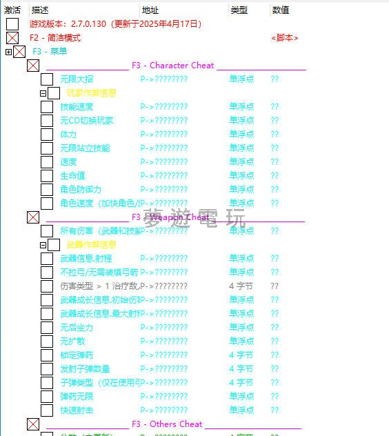 正文摘要:replyreload += ',' + 2382672; 《塵白禁區》輔助修改【國際服】2025年4月18日 v2.7.0.130:無敵增傷無後座等CT腳本,免費取得! 《塵白禁區》輔助修改 v2.7.0.130 功能介紹 本CE腳本為您帶來以下功能,助您在《塵白禁區》國際服中更加輕鬆遊玩: - 無敵模式 - 傷害增加 - 無後座力 - (其他CT腳本可能包含的功能) 《塵白禁區》輔助修改 v2.7.0.130 使用方法 1. 下載 Cheat Engine 2. 啟動遊戲,然後打開 Cheat Engine 3. 在Cheat Engine裡選擇遊戲進程 4. 把CT拖到Cheat Engine 5. 點擊表項前面小框激活功能或雙擊數值處修改數值 Cheat Engine 下載 - 《Cheat Engine》V7.6 中文化版超強記憶體[解鎖]工具:遊戲外掛製作神器!https://www.game735.com/thread-416920-1-1.html 《塵白禁區》輔助修改 v2.7.0.130 腳本下載 所有站內附件皆會附上安全掃描報告請會員查看純淨度百分比後判斷使用(adsbygoogle = window.adsbygoogle || []).push({});相關檔案須知:取得檔案前,請先詳細閱讀文章內容避免不必要錯誤與誤會發生。也可多參考文章討論樓層內容了解附件檔案相關討論資訊。 【此文章部分內容隱藏中】 解除隱藏說明教學點擊下方 繼續閱讀文章 後請仔細觀看文章內容 並依照指示進行下一步最後完成解除隱藏後系統會回到此文章自動顯示隱藏內容~繼續閱讀 常見問題 Q&A Q1: 腳本注入後沒有效果怎麼辦? A1: 請確認您已正確選擇遊戲進程,並檢查Cheat Engine版本是否相容。 Q2: 使用輔助修改是否會被封鎖帳號? A2: 使用任何第三方工具都有風險,請自行評估。建議低調使用,避免過於張揚。 Q3: 檔案是否安全? A3: 我們建議您在使用前使用防毒軟體掃描檔案,以確保安全。 Q4: 腳本中的數值可以自行修改嗎? A4: 可以,但請謹慎修改,以免造成遊戲崩潰或其他問題。 Q5: 請問有其他版本的《塵白禁區》輔助嗎? A5: 我們會持續關注並更新,請隨時留意我們的最新消息。 👉 GM後台版 遊戲 推薦 ⬇️⬇️⬇️ 快速玩各種二次元動漫手遊app replyreload += ',' + 2382672; |