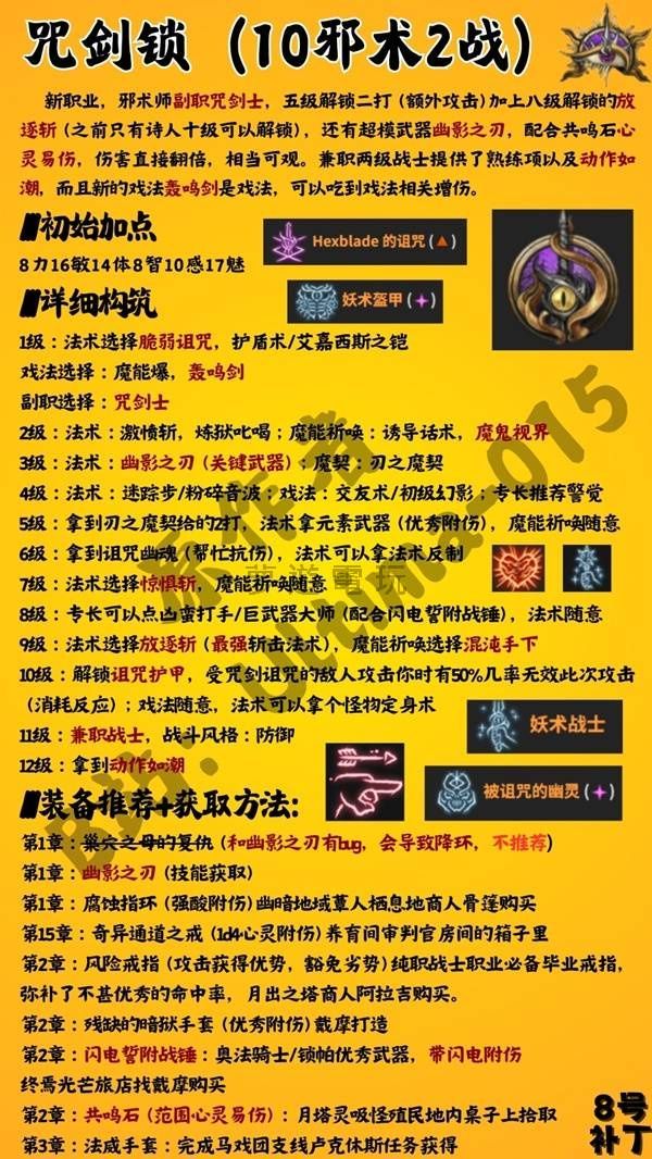 正文摘要:引言:咒劍邪術師BD簡介 在《柏德之門3》的遊戲世界中,隨著第八號更新檔的推出,一個全新的副職業選項——咒劍邪術師(Pact of the Blade Warlock)正式登場。這個構建(BD)在當前版本中被認為是極為強力的職業組合之一,對於正在尋找柏德之門3 新手開局或考慮轉職的玩家來說,是個值得深入了解的選擇。本篇攻略將基於現有資訊,為您介紹這個備受矚目的BD。 👉 GM後台版 遊戲 推薦 ⬇️⬇️⬇️ 快速玩各種二次元動漫手遊app 以下廣告滑動後還有帖子內容var custom_call_MIR = function (params) {if ( params === null || params.hasAd === false ) {var divRowSide;for (let index = 0; index < ONEADs.length; index++) {if (ONEADs[index].pub.player_mode === "mobile-inread") {divRowSide = ONEADs[index].pub.slotobj;}}var ins = document.createElement('ins');ins.className = 'clickforceads';ins.setAttribute('style', 'display:inline-block;');ins.setAttribute('data-ad-zone', '18264');divRowSide.appendChild(ins);var js = document.createElement('script');js.async = true;js.type = 'text/javascript';js.setAttribute('src', '//cdn.holmesmind.com/js/init.js');js.onload = function(){console.log('[ONEAD MIR] ClickForce Loaded');};divRowSide.appendChild(js);}};var _ONEAD = {};_ONEAD.pub = {};_ONEAD.pub.slotobj = document.getElementById("oneadMIRDFPTag");_ONEAD.pub.slots = ["div-onead-ad"];_ONEAD.pub.uid = "1000509";_ONEAD.pub.external_url = "https://onead.onevision.com.tw/";_ONEAD.pub.scopes = ["spotbuy", "speed"];_ONEAD.pub.player_mode_div = "div-onead-ad";_ONEAD.pub.player_mode = "mobile-inread";_ONEAD.pub.queryAdCallback = custom_call_MIR;var ONEAD_pubs = ONEAD_pubs || [];ONEAD_pubs.push(_ONEAD);var truvidScript = document.createElement('script'); truvidScript.async = true; truvidScript.setAttribute('data-cfasync','false'); truvidScript.type = 'text/javascript'; truvidScript.src = '//stg.truvidplayer.com/index.php?sub_user_id=597&widget_id=3309&playlist_id=2381&m=a&cb=' + (Math.random() * 10000000000000000); var currentScript = document.currentScript || document.scripts[document.scripts.length - 1]; currentScript.parentNode.insertBefore(truvidScript, currentScript.nextSibling); 咒劍邪術師BD常見問題Q&A Q1: 咒劍邪術師是什麼? A1: 咒劍邪術師是《柏德之門3》在第八號更新檔後新增的一個邪術師副職業分支。它允許邪術師與一把武器建立契約,使該武器的攻擊能力與邪術師的施法屬性相關聯,通常是魅力,這讓邪術師也能成為強力的近戰或遠程武器使用者。 Q2: 為什麼咒劍邪術師被認為很強? A2: 根據目前遊戲版本回饋,咒劍邪術師因其獨特的契約能力,能讓角色同時擁有強大的施法能力(基於魅力)和武器攻擊能力(也基於魅力),大幅簡化屬性需求,並提供靈活的戰鬥風格,使其在輸出和生存方面都有亮眼表現。 |