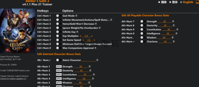 正文摘要:replyreload += ',' + 2382968; 修改器介紹 這款針對《柏德之門3》(Baldur's Gate 3)的風靈月影修改器已更新至v4.1.1版本,提供21種強大功能選項,讓玩家能夠自由調整遊戲體驗。無論你是想要輕鬆通關、體驗劇情,還是想要嘗試不同的遊戲玩法,這款修改器都能滿足你的需求。 功能選項一覽 基礎功能: - Ctrl+Num 1 – 上帝模式 (無敵) - Ctrl+Num 2 – 無限移動/行動/法術位/... - Ctrl+Num 3 – 物品/金幣不減少 - Ctrl+Num 4 – 忽略重量/不會負重過重 - Ctrl+Num 5 – 無限經驗值 - Ctrl+Num 6 – 經驗值倍數增加 - Ctrl+Num 7 – 設定遊戲速度 - Ctrl+Num 9 – 最低骰子目標/總是成功 - Ctrl+Num 0 – 最大同伴好感度 編輯選定角色能力值: - Alt+Num / – 選擇角色 - Alt+Num 1 – 力量 - Alt+Num 2 – 敏捷 - Alt+Num 3 – 體質 - Alt+Num 4 – 智力 - Alt+Num 5 – 感知 - Alt+Num 6 – 魅力 編輯所有可玩角色能力值: - Alt+Num 7 – 力量 - Alt+Num 8 – 敏捷 - Alt+Num 9 – 體質 - Alt+Num 0 – 智力 - Alt+Num . – 感知 - Alt+Num + – 魅力 下載與安裝說明 1. 點擊下方連結下載最新版本的修改器 2. 下載完成後解壓縮檔案 3. 在遊戲運行前或運行中啟動修改器 4. 使用上述快捷鍵組合啟用所需功能 下載連結: 所有站內附件皆會附上安全掃描報告請會員查看純淨度百分比後判斷使用(adsbygoogle = window.adsbygoogle || []).push({});相關檔案須知:取得檔案前,請先詳細閱讀文章內容避免不必要錯誤與誤會發生。也可多參考文章討論樓層內容了解附件檔案相關討論資訊。 【此文章部分內容隱藏中】 解除隱藏說明教學點擊下方 繼續閱讀文章 後請仔細觀看文章內容 並依照指示進行下一步最後完成解除隱藏後系統會回到此文章自動顯示隱藏內容~繼續閱讀 使用技巧 - 建議在單人遊戲模式中使用,避免在多人遊戲中使用可能導致的問題 - 使用修改器前建議先備份存檔 - 部分功能可能會影響遊戲平衡性,請根據個人喜好適當使用 - 若遊戲版本更新,可能需要等待修改器更新才能正常使用 常見問題解答 Q1: 這款修改器會影響我的遊戲存檔嗎? A1: 一般情況下不會直接影響存檔,但建議在使用前先備份存檔,以防萬一。 Q2: 修改器能在多人遊戲中使用嗎? A2: 不建議在多人遊戲中使用,可能會導致同步問題或被檢測。 Q3: 如果遊戲更新了,修改器還能用嗎? A3: 當遊戲版本更新後,可能需要等待修改器開發者更新對應版本。目前支援的是v4.1.1版本。 Q4: 使用修改器會被官方封號嗎? A4: 《柏德之門3》主要是單人遊戲,在單人模式下使用修改器通常不會有問題,但在多人模式中使用可能違反服務條款。 Q5: 如何解決修改器無法啟動的問題? A5: 請確保以管理員身分運行修改器,並檢查是否被防毒軟體攔截。某些情況下,可能需要暫時關閉防毒軟體或將修改器加入白名單。 👉 GM後台版 遊戲 推薦 ⬇️⬇️⬇️ 快速玩各種二次元動漫手遊appreplyreload += ',' + 2382968; |
