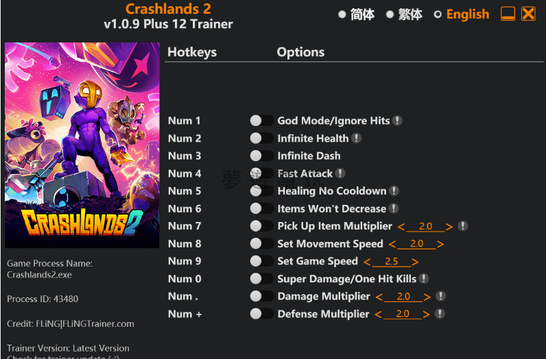 正文摘要:replyreload += ',' + 2382969; 修改器介紹 這款針對《Crashlands 2》的風靈月影修改器已更新至v1.0.9+版本,提供12種強大功能選項,讓玩家能夠自由調整遊戲體驗。無論你是想要輕鬆通關、體驗劇情,還是想要嘗試不同的遊戲玩法,這款修改器都能滿足你的需求。 功能選項一覽 遊戲增強功能: - Num 1 – 上帝模式/無視傷害 - Num 2 – 無限生命值 - Num 3 – 無限衝刺 - Num 4 – 快速攻擊 - Num 5 – 治療無冷卻 - Num 6 – 物品不減少 - Num 7 – 拾取物品倍數 - Num 8 – 設定移動速度 - Num 9 – 設定遊戲速度 - Num 0 – 超級傷害/一擊必殺 - Num . – 傷害倍數 - Num + – 防禦倍數 下載與安裝說明 1. 點擊下方連結下載最新版本的修改器 2. 下載完成後解壓縮檔案 3. 在遊戲運行前或運行中啟動修改器 4. 使用上述數字鍵啟用所需功能 下載連結: 所有站內附件皆會附上安全掃描報告請會員查看純淨度百分比後判斷使用(adsbygoogle = window.adsbygoogle || []).push({});相關檔案須知:取得檔案前,請先詳細閱讀文章內容避免不必要錯誤與誤會發生。也可多參考文章討論樓層內容了解附件檔案相關討論資訊。 【此文章部分內容隱藏中】 解除隱藏說明教學點擊下方 繼續閱讀文章 後請仔細觀看文章內容 並依照指示進行下一步最後完成解除隱藏後系統會回到此文章自動顯示隱藏內容~繼續閱讀 使用技巧 - 建議在單人遊戲模式中使用,避免在多人遊戲中使用可能導致的問題 - 使用修改器前建議先備份存檔 - 部分功能可能會影響遊戲平衡性,請根據個人喜好適當使用 - 若遊戲版本更新,可能需要等待修改器更新才能正常使用 - 「一擊必殺」功能特別適合快速通關或解決困難的戰鬥 常見問題解答 Q1: 這款修改器會影響我的遊戲存檔嗎? A1: 一般情況下不會直接影響存檔,但建議在使用前先備份存檔,以防萬一。 Q2: 修改器能在多人遊戲中使用嗎? A2: 不建議在多人遊戲中使用,可能會導致同步問題或被檢測。 Q3: 如果遊戲更新了,修改器還能用嗎? A3: 當遊戲版本更新後,可能需要等待修改器開發者更新對應版本。目前支援的是v1.0.9+版本。 Q4: 使用修改器會被官方封號嗎? A4: 在單人模式下使用修改器通常不會有問題,但在多人模式中使用可能違反服務條款。 Q5: 如何解決修改器無法啟動的問題? A5: 請確保以管理員身分運行修改器,並檢查是否被防毒軟體攔截。某些情況下,可能需要暫時關閉防毒軟體或將修改器加入白名單。 👉 GM後台版 遊戲 推薦 ⬇️⬇️⬇️ 快速玩各種二次元動漫手遊appreplyreload += ',' + 2382969; |