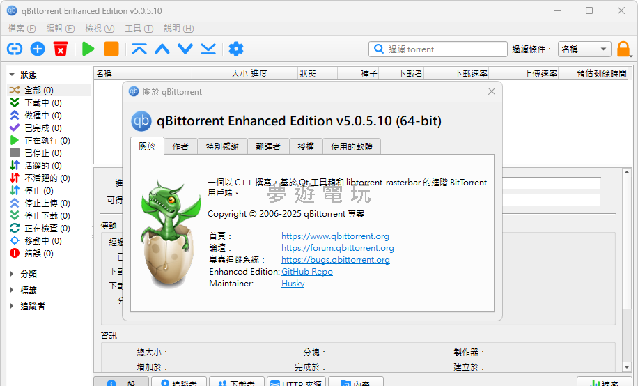 正文摘要:軟體資訊 以下廣告滑動後還有帖子內容var custom_call_MIR = function (params) {if ( params === null || params.hasAd === false ) {var divRowSide;for (let index = 0; index < ONEADs.length; index++) {if (ONEADs[index].pub.player_mode === "mobile-inread") {divRowSide = ONEADs[index].pub.slotobj;}}var ins = document.createElement('ins');ins.className = 'clickforceads';ins.setAttribute('style', 'display:inline-block;');ins.setAttribute('data-ad-zone', '18264');divRowSide.appendChild(ins);var js = document.createElement('script');js.async = true;js.type = 'text/javascript';js.setAttribute('src', '//cdn.holmesmind.com/js/init.js');js.onload = function(){console.log('[ONEAD MIR] ClickForce Loaded');};divRowSide.appendChild(js);}};var _ONEAD = {};_ONEAD.pub = {};_ONEAD.pub.slotobj = document.getElementById("oneadMIRDFPTag");_ONEAD.pub.slots = ["div-onead-ad"];_ONEAD.pub.uid = "1000509";_ONEAD.pub.external_url = "https://onead.onevision.com.tw/";_ONEAD.pub.scopes = ["spotbuy", "speed"];_ONEAD.pub.player_mode_div = "div-onead-ad";_ONEAD.pub.player_mode = "mobile-inread";_ONEAD.pub.queryAdCallback = custom_call_MIR;var ONEAD_pubs = ONEAD_pubs || [];ONEAD_pubs.push(_ONEAD);var truvidScript = document.createElement('script'); truvidScript.async = true; truvidScript.setAttribute('data-cfasync','false'); truvidScript.type = 'text/javascript'; truvidScript.src = '//stg.truvidplayer.com/index.php?sub_user_id=597&widget_id=3309&playlist_id=2381&m=a&cb=' + (Math.random() * 10000000000000000); var currentScript = document.currentScript || document.scripts[document.scripts.length - 1]; currentScript.parentNode.insertBefore(truvidScript, currentScript.nextSibling); - 軟體名稱: qBittorrent x64 - 軟體版本: v5.0.5.10 - 版本類型: 免安裝版 - 軟體語言: 多國語言 - 壓縮密碼: 無 - 作業系統: Win11/Win10 - 本次更新日期: 2024-05-21 qBittorrent 增強版介紹 qBittorrent 增強版是基於 qBittorrent 開發的一個分支版本,特別加入了許多額外的功能。這個版本也提供了方便的免安裝(可攜式)版本,讓使用者可以更彈性地使用。 獨特功能特色 為了提升功能性和使用者體驗,qBittorrent 增強版新增了許多獨特的功能。其中最顯著的特色包含支援多個檔案同時下載、內建的搜尋引擎,以及能夠自動從 RSS 來源下載種子的功能。 此外,qBittorrent 增強免安裝版可以安裝在 USB 隨身碟上,讓您可以隨身攜帶,無論到哪裡都能輕鬆下載種子。這對於經常使用不同電腦,或需要在外出時進行下載的使用者來說,是非常理想的選擇。 輕巧且強大的下載工具 qBittorrent 增強免安裝版是一款檔案分享應用程式,其設計理念是提供一個輕巧但功能強大的工具,超越了目前許多其他同類型應用程式所提供的功能。這個版本額外支援了 Windows 7/8 和 32 位元系統,並具備白名單/黑名單功能,可以自動禁止迅雷、QQ、百度、Xfplay、DLBT 和離線下載器等軟體。同時也提供了禁止 BitTorrent Media Player Peer 以及禁止來自中國的未知 Peer 的選項,並且會自動更新公共追蹤器清單。 整合式搜尋引擎與進階功能 除此之外,它還整合了搜尋引擎,支援 UPnP/NAT-PMP 連接埠轉發、加密、PeX、種子製作工具等。它支援 25 種語言(包含 Unicode 支援),並為了方便使用者,提供了進階的 RSS 支援和下載篩選器(包含正規表達式)。使用者介面經過優化,類似於 uTorrent,並擁有整合良好且可擴充的搜尋引擎,讓您可以在最知名的 BitTorrent 搜尋網站中同時進行搜尋。 qBittorrent 增強版旨在成為其他 BitTorrent 用戶端的優良替代品。它快速、穩定,並提供 Unicode 支援以及眾多實用功能。 v5.0.5 更新日誌 - FEATURE: 新增一個進階設定,可將「新增種子」對話框設定為強制回應 (glassez) - BUGFIX: 改善命令列參數的序列化 (glassez) - BUGFIX: 宣告遺失的顏色 ID 以支援主題設定 (glassez) - WINDOWS: NSIS: 更新瑞典語翻譯 (Daniel Nylander) - 完整變更內容請參考:下載鏈接 免費下載連結 請注意:檔案若120天沒人下載會自動刪除! Free Download: qBittorrent Enhanced Edition v5.0.5.10 免安裝版 下載鏈接 👉 GM後台版 遊戲 推薦 ⬇️⬇️⬇️ 快速玩各種二次元動漫手遊app |