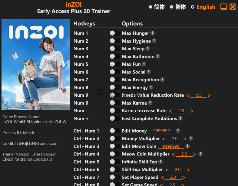 正文摘要:replyreload += ',' + 2383420; inZOI遊戲修改器介紹 想要在《inZOI》這款生活模擬遊戲中獲得更多樂趣嗎?本文為您帶來最新版本的遊戲修改器,適用於Early Access+版本,最後更新日期為2025年4月20日。這款修改器提供了20種功能選項,讓您的遊戲體驗更加豐富多彩! 修改器功能一覽 基本需求調整功能: - Num 1 – 最大飢餓值 - Num 2 – 最大衛生值 - Num 3 – 最大睡眠值 - Num 4 – 最大如廁值 - Num 5 – 最大娛樂值 - Num 6 – 最大社交值 - Num 7 – 最大認可度 - Num 8 – 最大能量值 - Num 9 – 需求值減少率調整 - Num 0 – 最大業力值 - Num . – 業力增加率調整 - Num + – 快速完成志向 進階資源與技能調整: - Ctrl+Num 1 – 編輯金錢 - Ctrl+Num 2 – 金錢倍數調整 - Ctrl+Num 3 – 編輯喵幣 - Ctrl+Num 4 – 喵幣倍數調整 - Ctrl+Num 5 – 無限技能經驗 - Ctrl+Num 6 – 技能經驗倍數調整 - Ctrl+Num 7 – 設定角色速度 - Ctrl+Num 8 – 設定遊戲速度 修改器使用方法 1. 下載修改器檔案(見下方連結) 2. 關閉所有防毒軟體,因為修改器可能被誤判為病毒 3. 解壓縮下載的檔案 4. 先啟動遊戲,等進入遊戲後再執行修改器 5. 使用上述快捷鍵啟用各項功能 6. 享受遊戲的全新體驗! 下載連結 inZOI Early Access Plus 20 Trainer.exe 所有站內附件皆會附上安全掃描報告請會員查看純淨度百分比後判斷使用(adsbygoogle = window.adsbygoogle || []).push({});相關檔案須知:取得檔案前,請先詳細閱讀文章內容避免不必要錯誤與誤會發生。也可多參考文章討論樓層內容了解附件檔案相關討論資訊。 【此文章部分內容隱藏中】 解除隱藏說明教學點擊下方 繼續閱讀文章 後請仔細觀看文章內容 並依照指示進行下一步最後完成解除隱藏後系統會回到此文章自動顯示隱藏內容~繼續閱讀 常見問題解答 問:修改器是否適用於所有版本的inZOI? 答:本修改器專為Early Access+版本設計,其他版本可能無法正常運作。 問:使用修改器會被遊戲官方封號嗎? 答:由於inZOI主要是單人遊戲,使用修改器通常不會導致帳號被封。但請注意,如果遊戲未來加入線上功能,情況可能會改變。 問:為什麼我的防毒軟體會檢測到修改器是病毒? 答:修改器需要修改遊戲記憶體,因此常被防毒軟體誤判為病毒。這是正常現象,您可以將修改器加入防毒軟體的白名單。 問:修改器無法運作怎麼辦? 答:請確保您已以管理員身分執行修改器,並且在遊戲啟動後再開啟修改器。如果仍然無法使用,可能是遊戲版本更新導致不相容。 問:使用修改器會影響遊戲存檔嗎? 答:一般情況下不會影響存檔,但建議在使用修改器前先備份您的遊戲存檔,以防萬一。 👉 GM後台版 遊戲 推薦 ⬇️⬇️⬇️ 快速玩各種二次元動漫手遊appreplyreload += ',' + 2383420; |