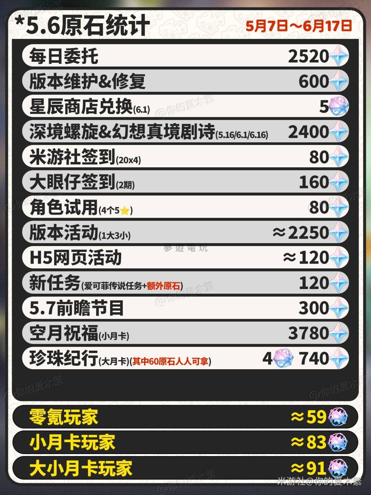 正文摘要:《原神》5.6版本原石獲取攻略:新手拓荒必看! 《原神》5.6版本原石獲取預估 《原神》5.6版本即將更新,許多玩家都想知道在這個版本中可以拿到多少原石。這篇文章整理了根據目前官方釋出的資訊以及過去版本的經驗,預估了5.6版本可以獲得的原石數量,希望能幫助大家規劃資源,無論是新手拓荒還是老玩家抽卡,都能更有效率。 👉 GM後台版 遊戲 推薦 ⬇️⬇️⬇️ 快速玩各種二次元動漫手遊app 5.6版本原石獲取 常見問題Q&A 以下廣告滑動後還有帖子內容var custom_call_MIR = function (params) {if ( params === null || params.hasAd === false ) {var divRowSide;for (let index = 0; index < ONEADs.length; index++) {if (ONEADs[index].pub.player_mode === "mobile-inread") {divRowSide = ONEADs[index].pub.slotobj;}}var ins = document.createElement('ins');ins.className = 'clickforceads';ins.setAttribute('style', 'display:inline-block;');ins.setAttribute('data-ad-zone', '18264');divRowSide.appendChild(ins);var js = document.createElement('script');js.async = true;js.type = 'text/javascript';js.setAttribute('src', '//cdn.holmesmind.com/js/init.js');js.onload = function(){console.log('[ONEAD MIR] ClickForce Loaded');};divRowSide.appendChild(js);}};var _ONEAD = {};_ONEAD.pub = {};_ONEAD.pub.slotobj = document.getElementById("oneadMIRDFPTag");_ONEAD.pub.slots = ["div-onead-ad"];_ONEAD.pub.uid = "1000509";_ONEAD.pub.external_url = "https://onead.onevision.com.tw/";_ONEAD.pub.scopes = ["spotbuy", "speed"];_ONEAD.pub.player_mode_div = "div-onead-ad";_ONEAD.pub.player_mode = "mobile-inread";_ONEAD.pub.queryAdCallback = custom_call_MIR;var ONEAD_pubs = ONEAD_pubs || [];ONEAD_pubs.push(_ONEAD);var truvidScript = document.createElement('script'); truvidScript.async = true; truvidScript.setAttribute('data-cfasync','false'); truvidScript.type = 'text/javascript'; truvidScript.src = '//stg.truvidplayer.com/index.php?sub_user_id=597&widget_id=3309&playlist_id=2381&m=a&cb=' + (Math.random() * 10000000000000000); var currentScript = document.currentScript || document.scripts[document.scripts.length - 1]; currentScript.parentNode.insertBefore(truvidScript, currentScript.nextSibling); Q1: 這個原石統計是確定的嗎? A1: 這份統計是根據目前已知的資訊和過去版本的經驗進行的預估,實際獲得的原石數量可能會有些許差異,但作為參考規劃資源是足夠的。 Q2: 新手玩家也能拿到這麼多原石嗎? A2: 新手玩家除了上述來源外,還可以透過完成主線任務、世界任務、開啟寶箱等方式獲得大量額外原石,前期拓荒資源會更豐富。 Q3: 深境螺旋的原石是每期都有嗎? A3: 是的,深境螺旋每期更新都會提供原石獎勵,能否拿滿取決於玩家的練度和挑戰進度。 Q4: 版本活動的原石好拿嗎? A4: 版本活動通常會有不同的玩法和難度,大部分活動的原石獎勵只要參與並完成一定目標就能拿到,是重要的原石來源。 Q5: 除了原石,還有其他抽卡資源嗎? A5: 除了原石,還可以透過星塵、星輝兌換相遇之緣和糾纏之緣,以及透過遊戲內獎勵獲得免費的抽卡機會。 Q6: 如何最大化獲取5.6版本的原石? A6: 建議每天完成日常委託,積極參與所有版本活動,挑戰深境螺旋,並探索新增的地圖區域,這樣可以確保不錯過任何一個原石來源。 |