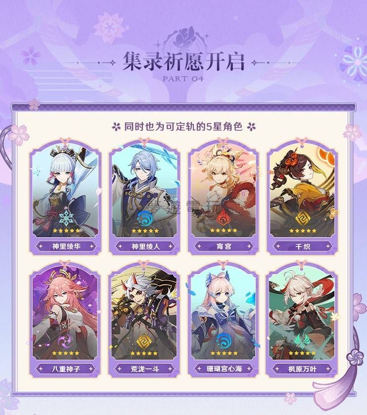 《原神》5.6版本集錄祈願角色清單 在《原神》即將到來的5.6版本更新中,集錄祈願將會加入新的限定五星角色。對於正在拓荒或想補強隊伍的新手玩家來說,這是一個不錯的機會。本次集錄祈願的角色包含:神里綾華、宵